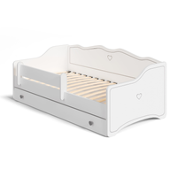 Łóżko dziecięce EMMA 180x80 barierka szuflada uchwyty serduszka - Biały / Szary