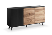 Komoda MODERN trzydrzwiowa, ryflowany front, loft - Dąb Wotan / Czarny