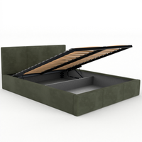 Łóżko podwójne tapicerowane VALENTINO 160x200 pojemnik na pościel - Oliwkowy
