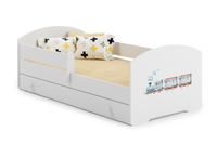 Łóżko dziecięce LUK 140x70 barierka szuflada grafika - Pociąg