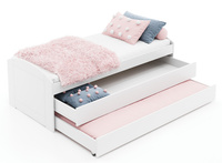 Łóżko Lori to praktyczny model z podwójną funkcją spania Uniwersalny design i neutralna kolorystyka sprawiają, że pasuje zarówno do pokoju chłopca, jak i dziewczynki.