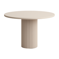 Stół Velore łączy elegancką podstawę w kolorze kaszmir z nowoczesnym, okrągłym blatem w białym macie, tworząc stylowy mebel do każdego wnętrza.