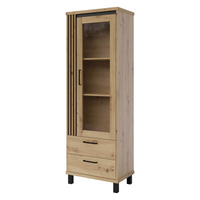 Witryna LENA to funkcjonalny regał z przeszklonymi drzwiczkami, idealny na książki, dekoracje lub kolekcjonerskie przedmioty, które chcesz wyeksponować.