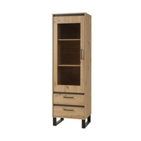 Stylowa wysoka komoda SANI doskonale sprawdzi się jako barek w salonie lub jadalni. W witrynie z przeszkloną półką wyeksponujesz ozdobne szkło lub inne dekoracje.
