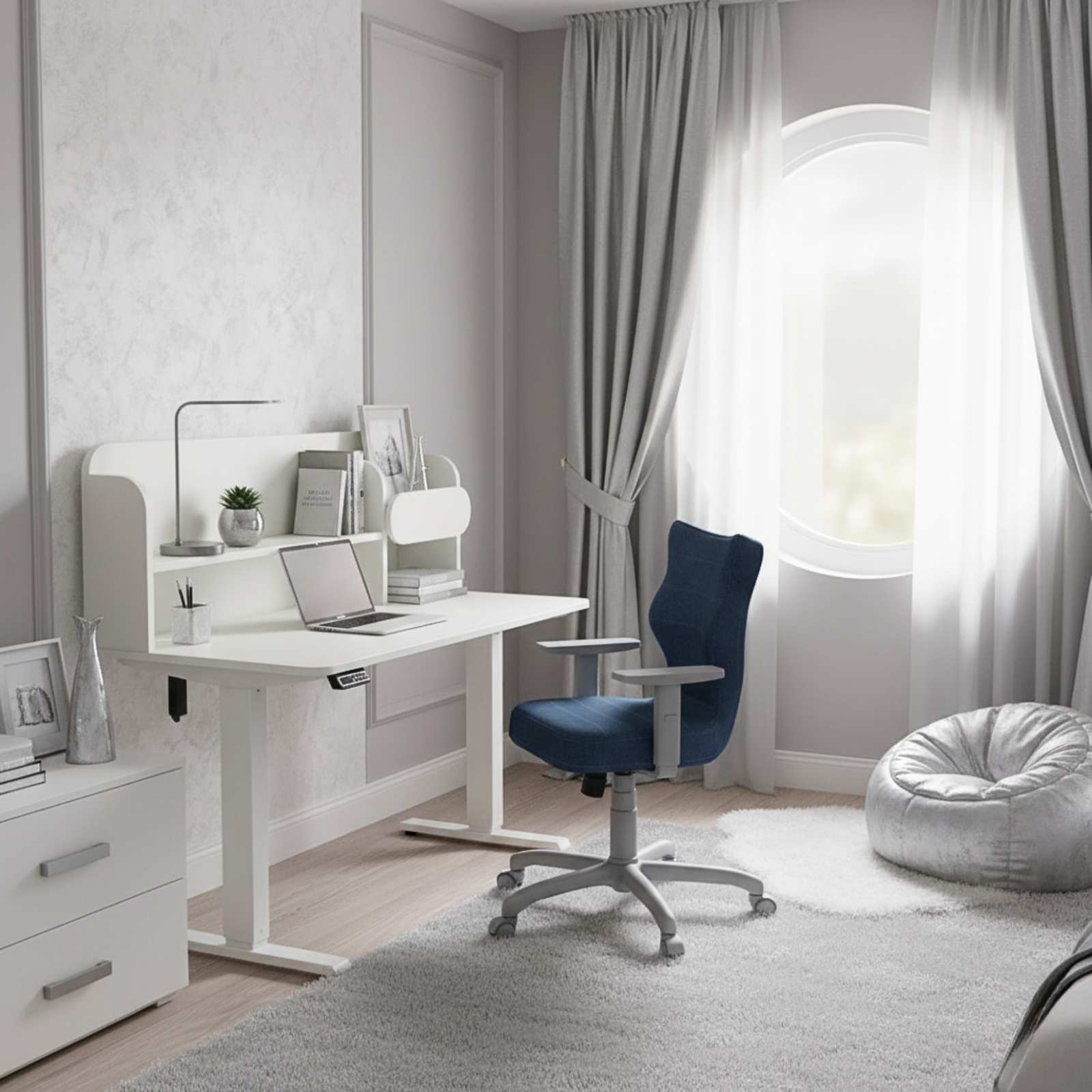 Biurko ELISS to idealne rozwiązanie stworzone z myślą o dzieciach i młodzieży. Łączy nowoczesny wygląd z ergonomią, umożliwiając łatwą zmianę wysokości wraz ze wzrostem dziecka. Elektryczna regulacja pozwala dopasować biurko do nauki, rysowania i pracy przy komputerze, wspierając prawidłową postawę oraz komfort każdego dnia.