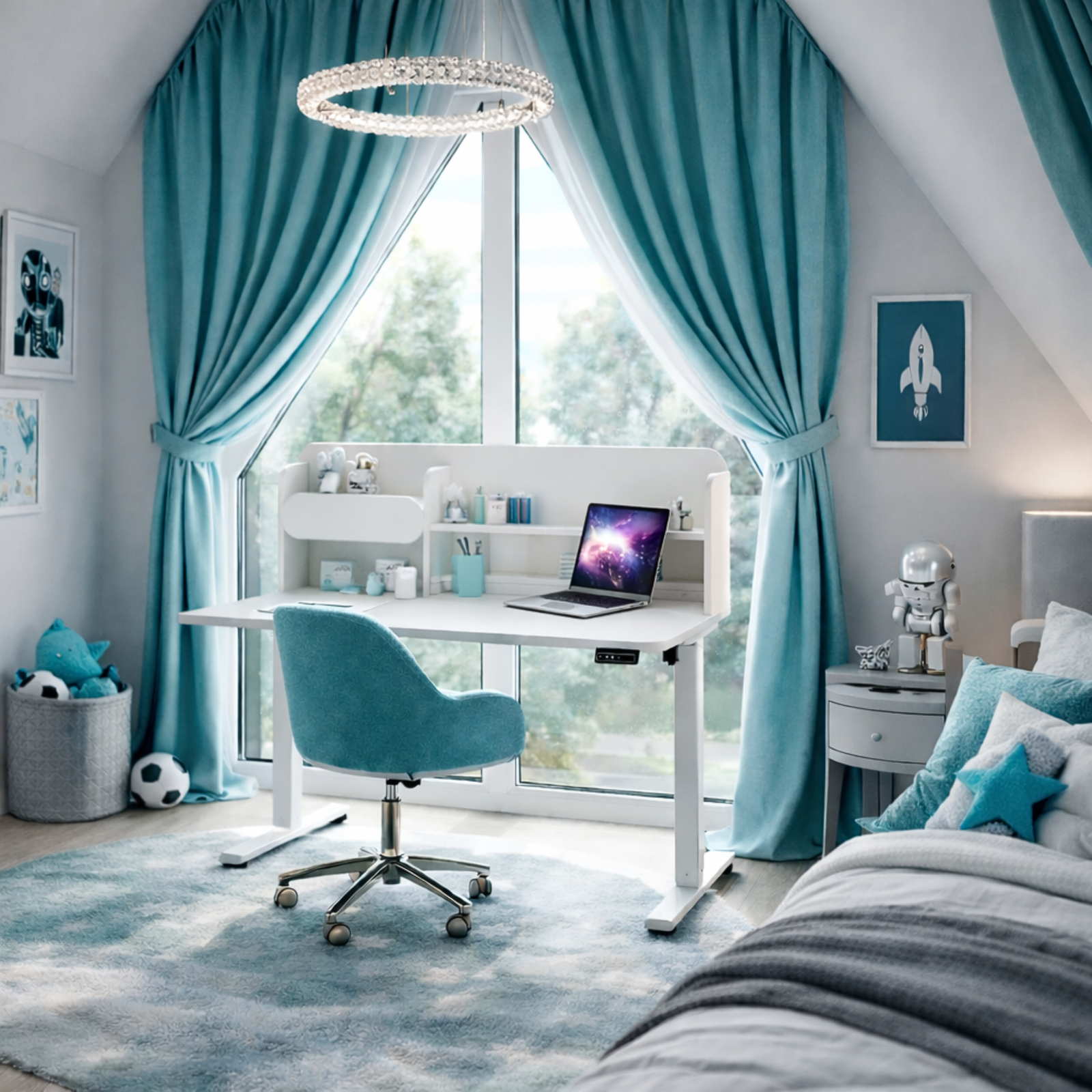Biurko ELISS w wersji dziecięcej zostało zaprojektowane z myślą o zdrowiu, wygodzie i prawidłowej postawie najmłodszych użytkowników. Elektryczna regulacja wysokości pozwala łatwo dopasować biurko do wzrostu dziecka oraz zmieniających się potrzeb na kolejnych etapach rozwoju. Nowoczesna, przyjazna forma sprawia, że biurko doskonale sprawdzi się zarówno w pokoju dziecięcym, jak i młodzieżowym.