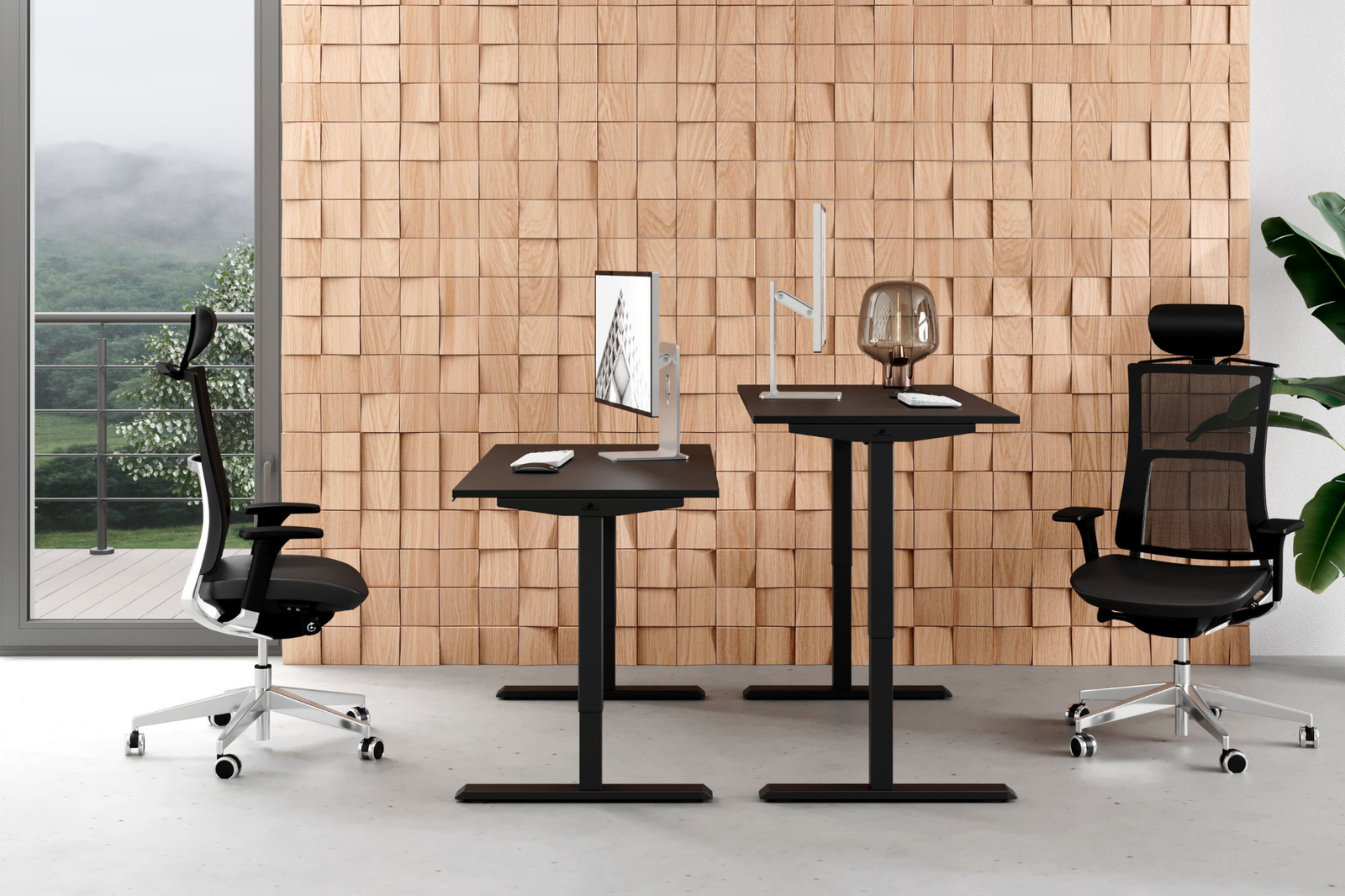 Regulacja wysokości blatu biurka oferuje możliwość idealnego dopasowania mebla to indywidualnych potrzeb i preferencji użytkownika. Dzięki takiemu rozwiązaniu z łatwością można zmienić pozycję z siedzącej na stojącą, co zmniejsza napięcie mięśniowe i poprawia ogólne samopoczucie i koncentrację podczas długich godzin spędzonych przy pracy lub nauce. Stelaż biurka z elektryczną regulacją wysokości blatu wyposażony został w prosty w obsłudze panel sterujący z wyświetlaczem LED pokazującym aktualną wysokość oraz przyciskami „góra” i „dół”, a także przyciskami umożliwiającymi zaprogramowanie dwóch najbardziej komfortowych ustawień wysokości.