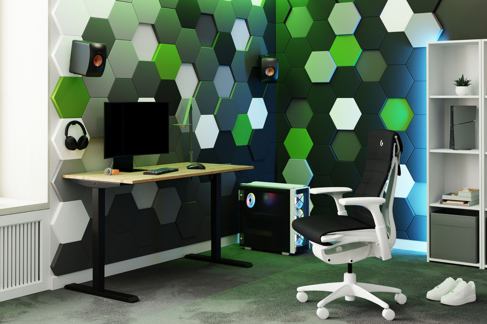 Regulacja wysokości blatu biurka oferuje możliwość idealnego dopasowania mebla to indywidualnych potrzeb i preferencji użytkownika. Dzięki takiemu rozwiązaniu z łatwością można zmienić pozycję z siedzącej na stojącą, co zmniejsza napięcie mięśniowe i poprawia ogólne samopoczucie i koncentrację podczas długich godzin spędzonych przy pracy lub nauce. Stelaż biurka z elektryczną regulacją wysokości blatu wyposażony został w prosty w obsłudze panel sterujący z wyświetlaczem LED pokazującym aktualną wysokość oraz przyciskami „góra” i „dół”, a także przyciskami umożliwiającymi zaprogramowanie dwóch najbardziej komfortowych ustawień wysokości.