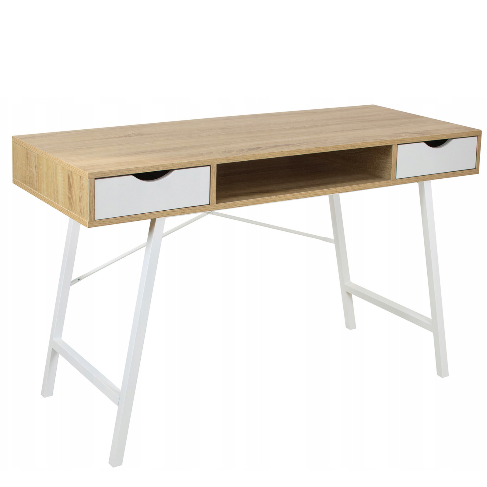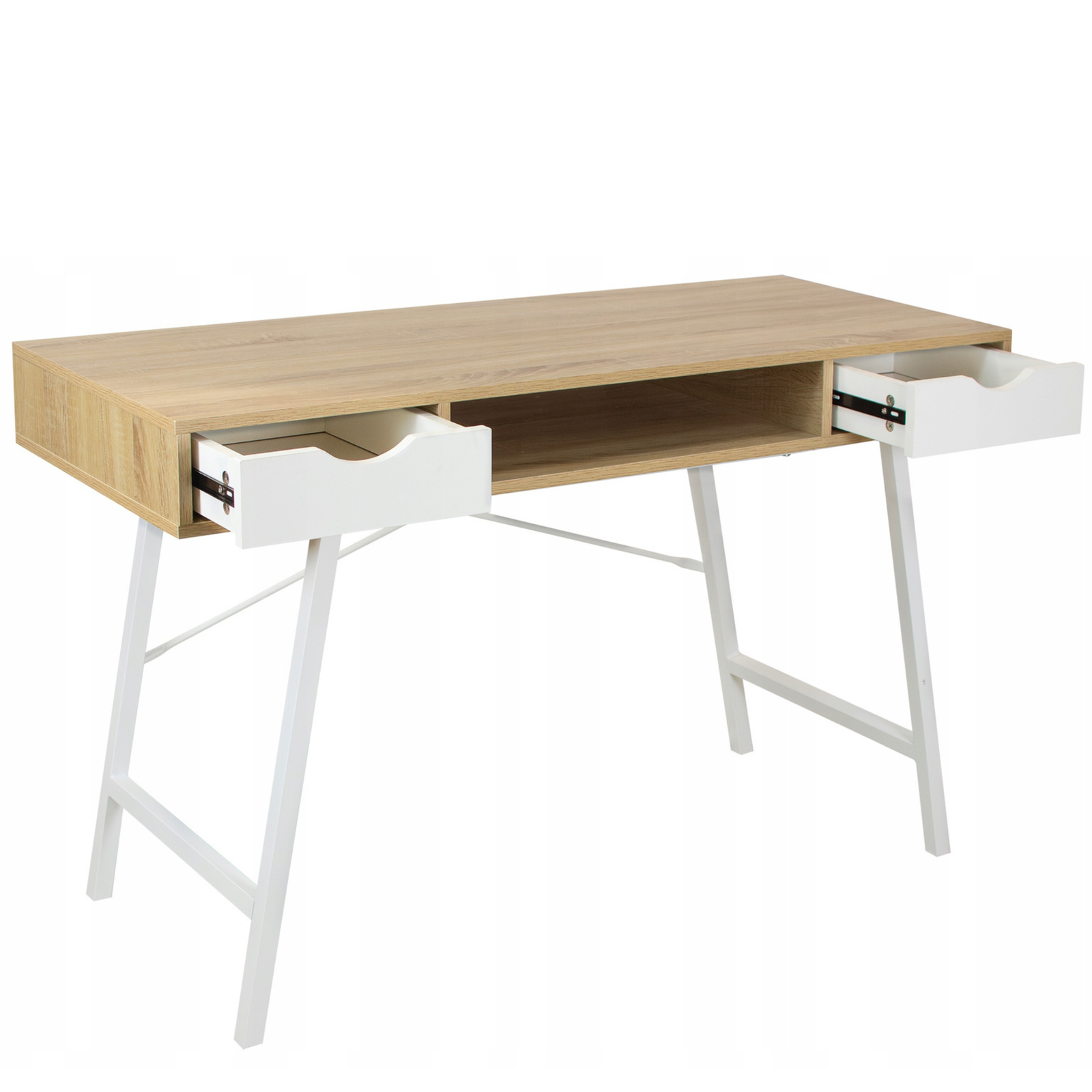 Model LINARO został zaprojektowany z myślą o codziennym użytkowaniu. Dwie pojemne szuflady oraz otwarta półka pozwalają na wygodne przechowywanie dokumentów, przyborów biurowych i innych drobiazgów, dzięki czemu wszystko pozostaje w zasięgu ręki. Szeroki blat roboczy zapewnia komfortową przestrzeń do pracy przy komputerze, nauki czy realizacji kreatywnych projektów. Minimalistyczne detale i subtelna kolorystyka sprawiają, że biurko wkomponuje się zarówno w przestrzeń nowoczesną, jak i klasyczną, nadając jej lekkości i stylu.