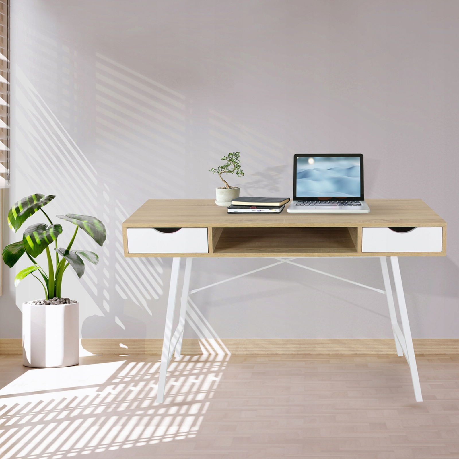 Biurko LINARO to propozycja dla osób, które cenią minimalizm, wygodę i styl. Jego lekka, skandynawska forma wprowadza do wnętrza harmonię i porządek, a połączenie bieli z naturalnym odcieniem drewna nadaje mu ponadczasowego charakteru. To idealny wybór zarówno do nowoczesnego biura, domowego gabinetu, jak i pokoju młodzieżowego. Biurko LINARO łączy w sobie elegancję i funkcjonalność, tworząc przestrzeń sprzyjającą skupieniu i efektywnej pracy.