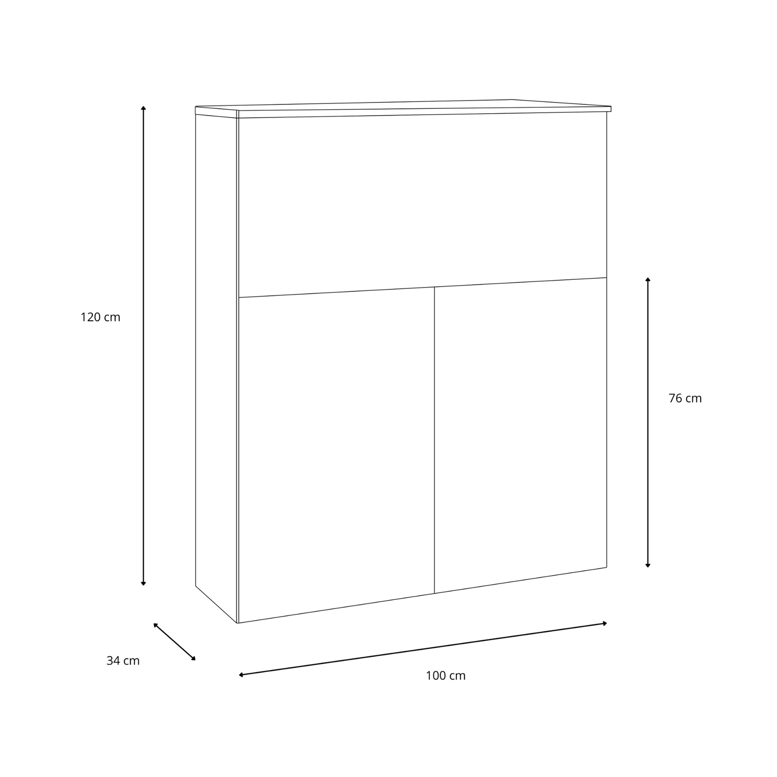 Biurko VERTO to idealne rozwiązanie - w kilka sekund możesz rozłożyć swoje mini biuro i równie szybko je schować, kiedy nie jest potrzebne. Po rozłożeniu biurko oferuje w pełni wyposażone miejsce do pracy lub nauki z wbudowanymi półkami. Szeroki blat umożliwia bardzo komfortową pracę przy biurku. Duży blat pozwala na wygodne ustawienie laptopa, a także rozłożenie dokumentów, książek czy zeszytów. Konstrukcja mebla z wbudowanymi półkami sprawia, że biurko jest idealnie przystosowane do przechowywania niezbędnych do pracy i nauki rzeczy i akcesoriów biurowych, tak by znajdowały się one zawsze pod ręką.