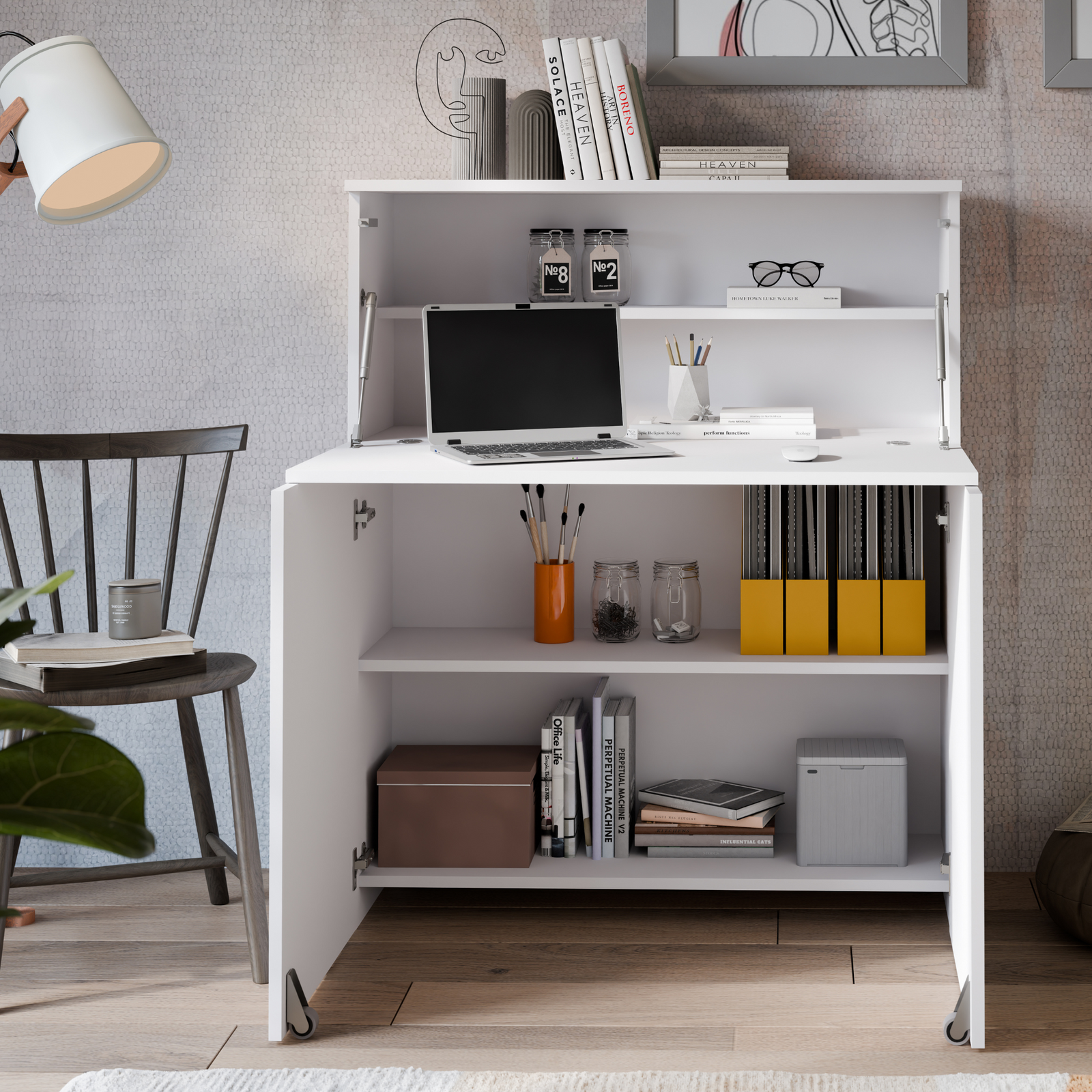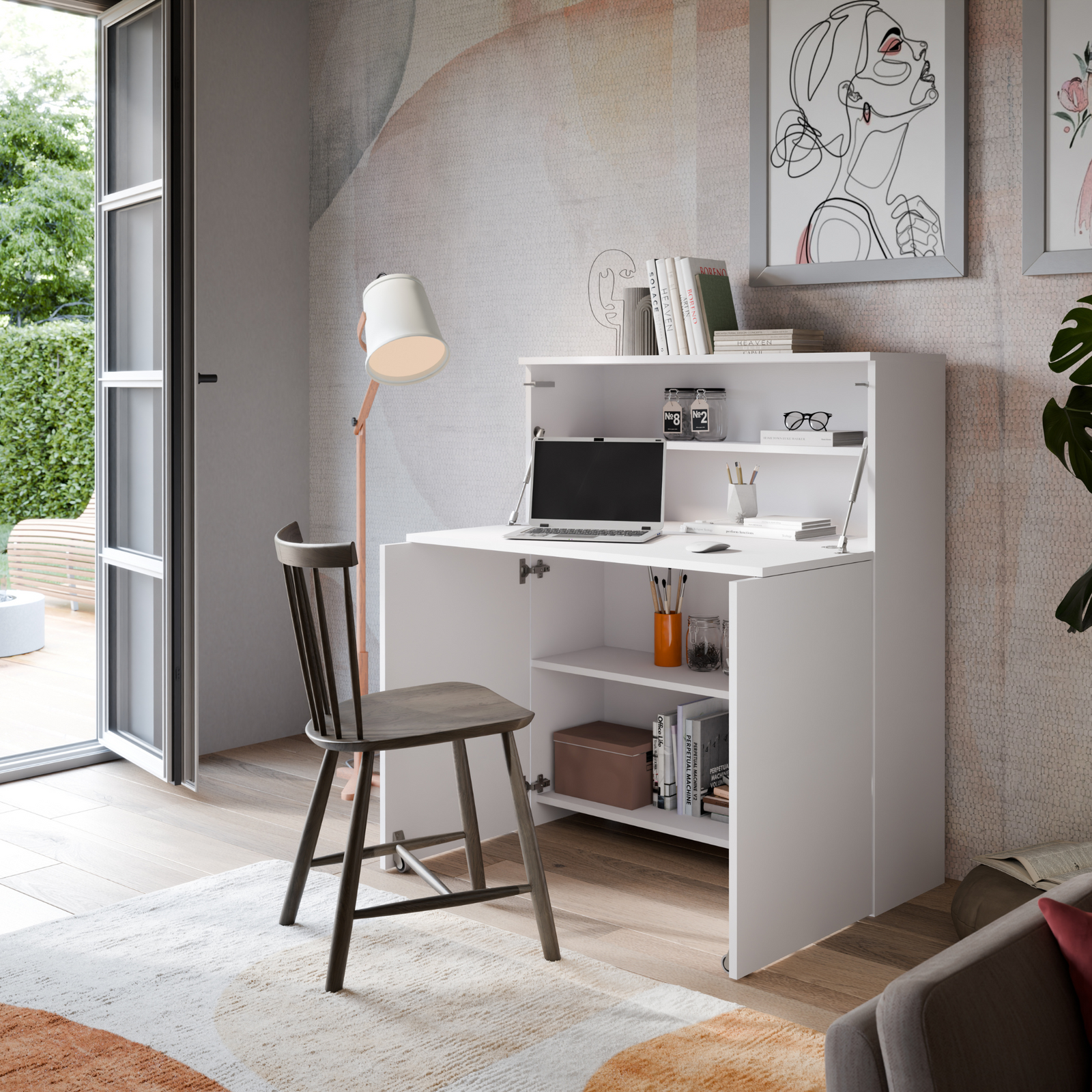 Biurko rozkładane VERTO składane chowane w szafkę - Biały
