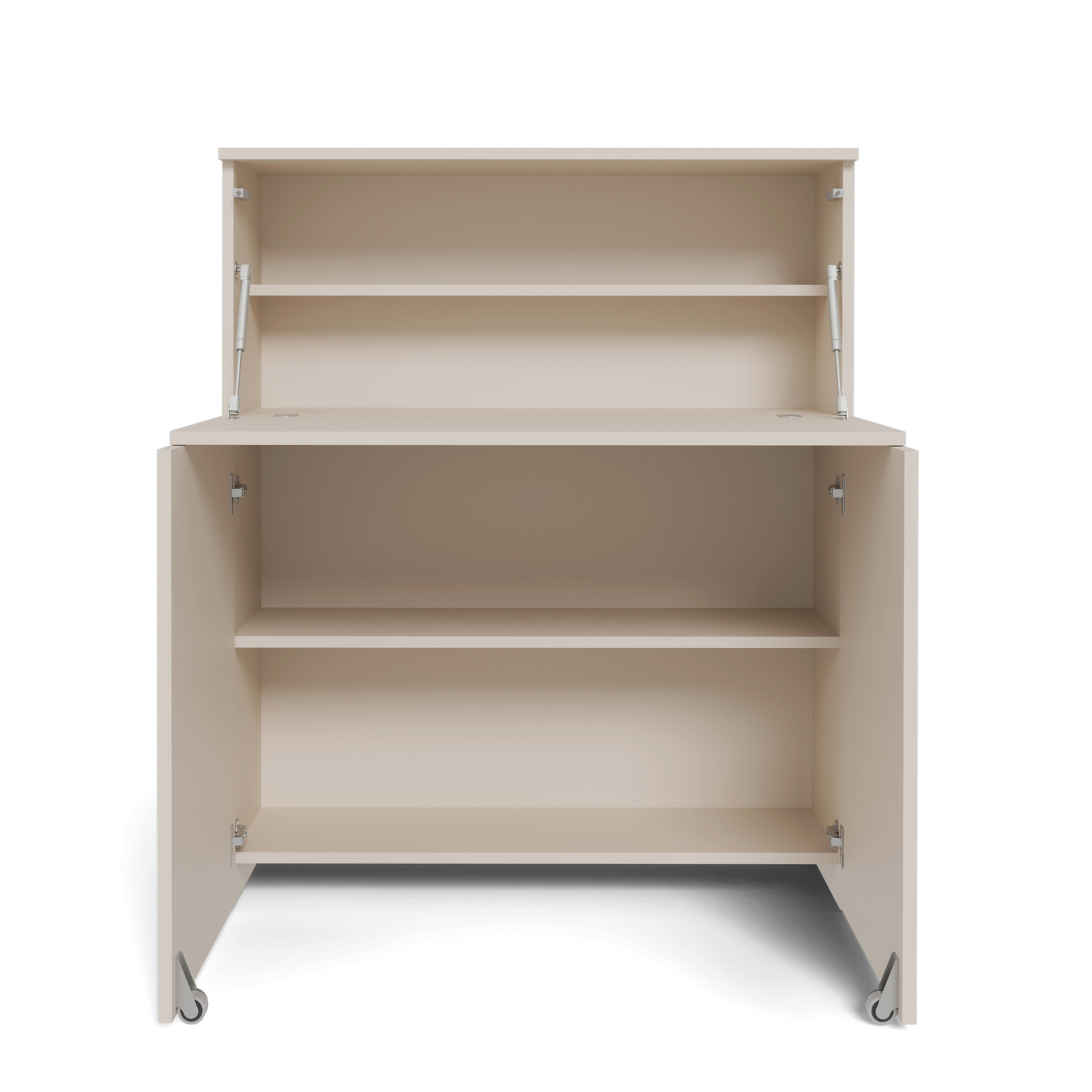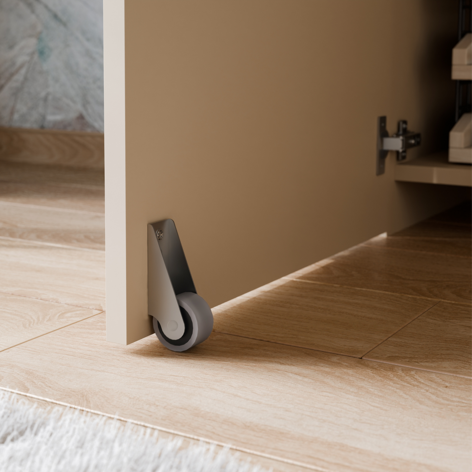 - Dolne drzwiczki otwierane na zawiasach i kółeczkach