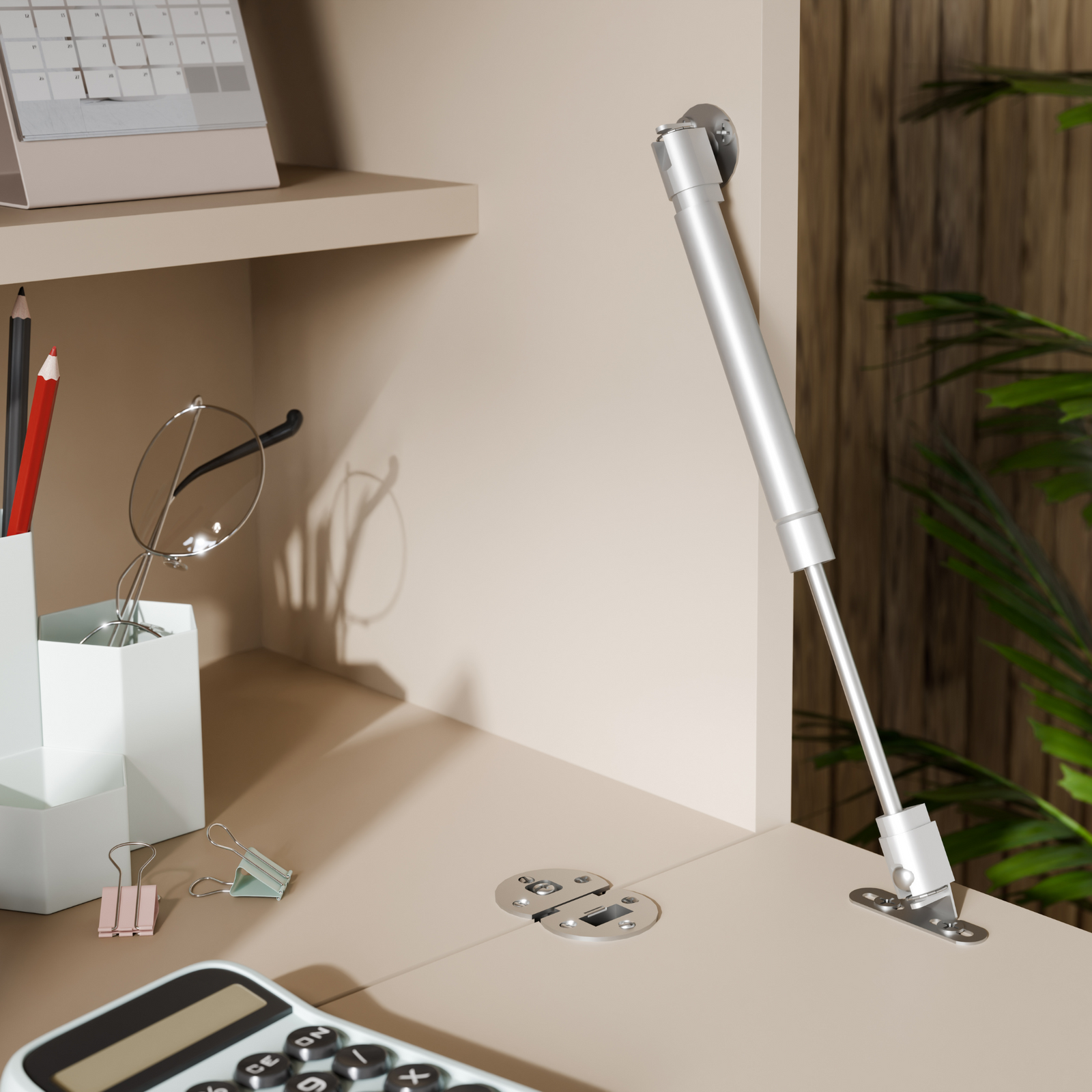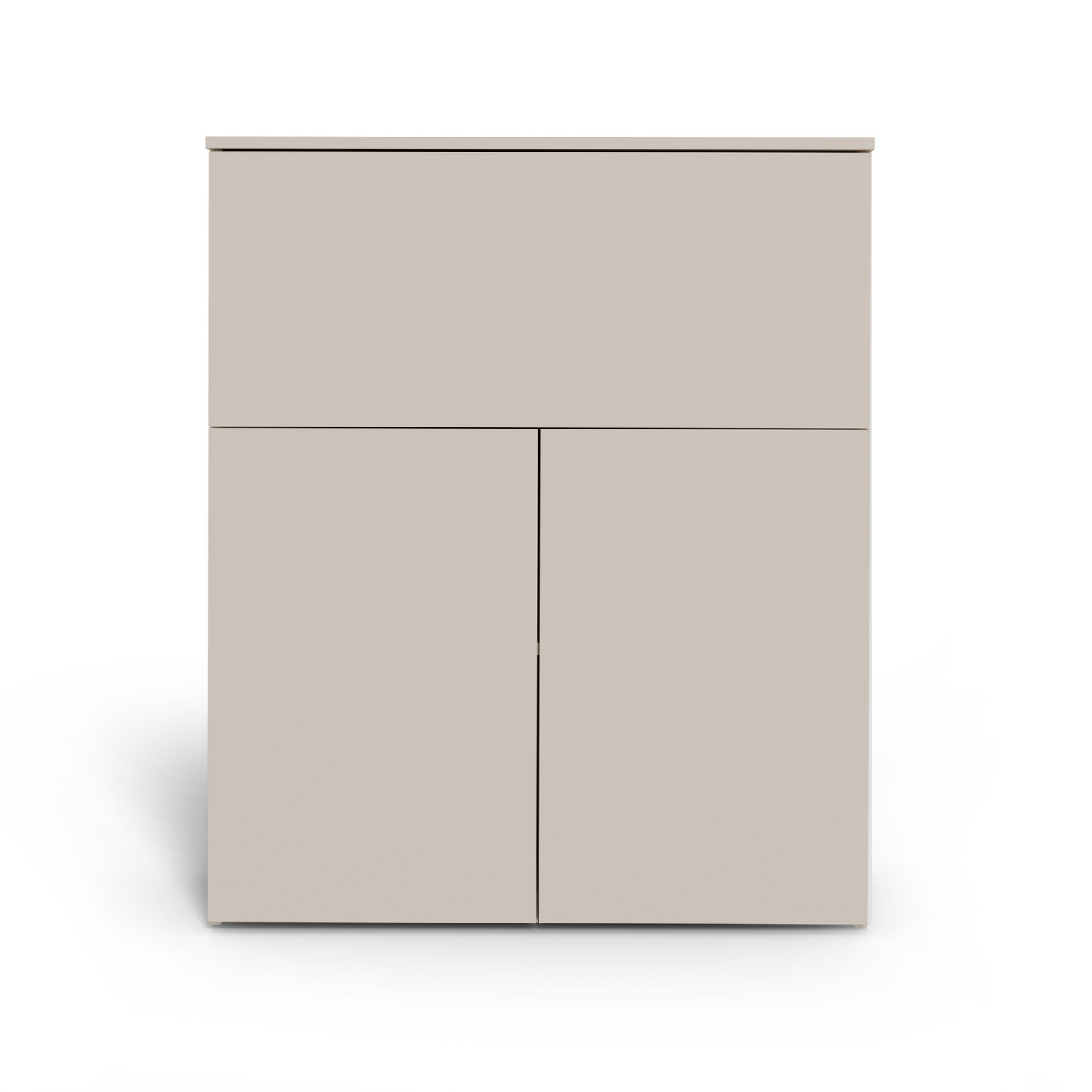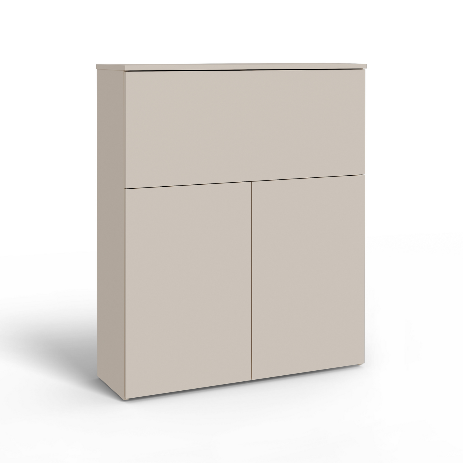 Mebel wykonany został z myślą o codziennym użytkowaniu z wysokiej jakości materiałów i z dbałością o każdy detal. Cała konstrukcja stworzona została z płyty meblowej laminowanej obustronnie o grubości 18mm, co zapewnia trwałość na długie lata. Dla podkreślenia jakości wizualnej, wszystkie krawędzie zostały starannie zabezpieczone obrzeżem PCV/ABS. Bez uchwytowe drzwiczki szafki otwierane są z wykorzystaniem systemu TIP-ON. Górna część drzwiczek otwierana jest w dół przy pomocy siłowników. W dolnej części szafki, do dwudrzwiowych frontów otwieranych na zawiasach zamocowano dodatkowe kółeczka na dole, które nie tylko ułatwiają otwieranie, ale stanowią dodatkowe podparcie i stabilność dla blatu biurka. Dobrze przemyślana, solidna konstrukcja mebla gwarantuje jego stabilność. Biurko VETRO to inwestycja w wygodę i estetykę domowej przestrzeni.