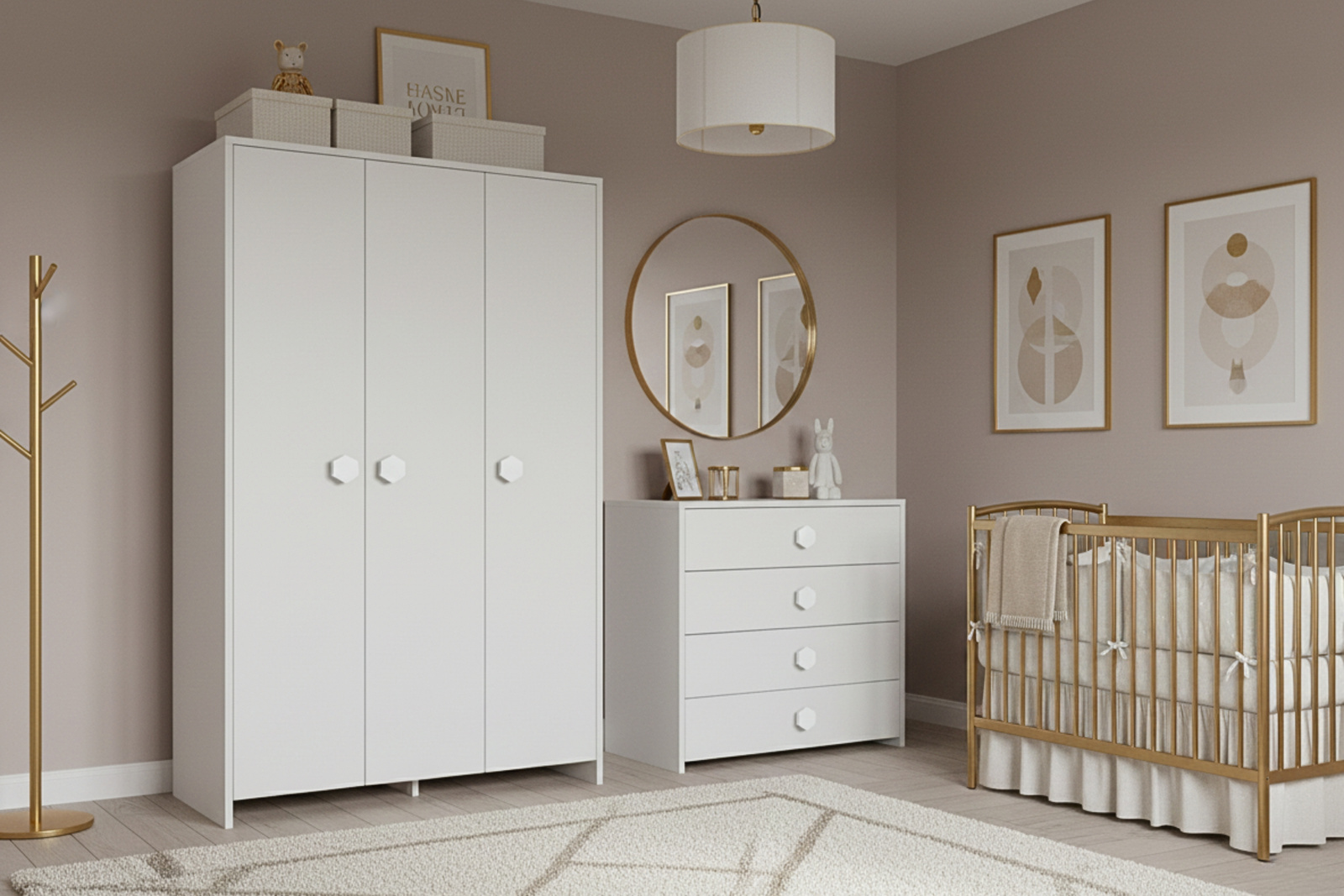 - Wykonany z trwałej płyty MDF.