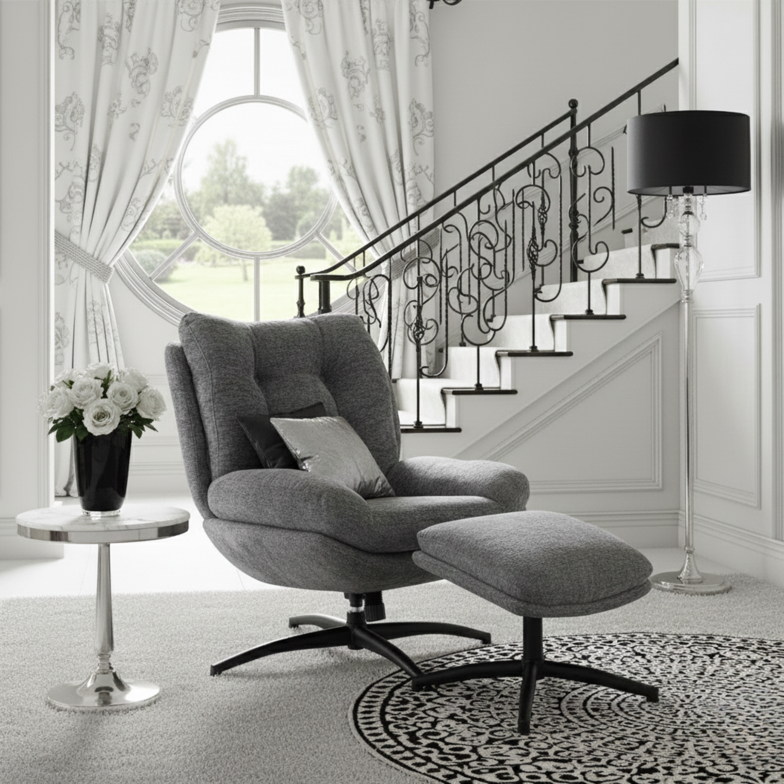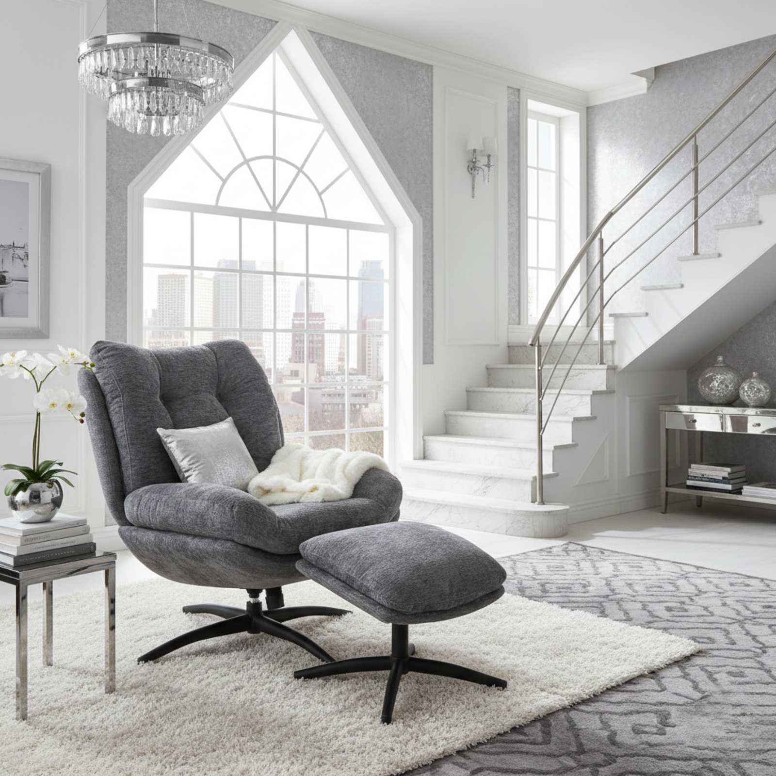 Fotel AMARO to połączenie nowoczesnej estetyki z wysokim komfortem użytkowania. Szara tapicerka nadaje wnętrzu elegancki, stonowany charakter i łatwo komponuje się z różnymi stylami aranżacji. Przemyślana forma sprawia, że fotel doskonale sprawdzi się jako miejsce codziennego wypoczynku.