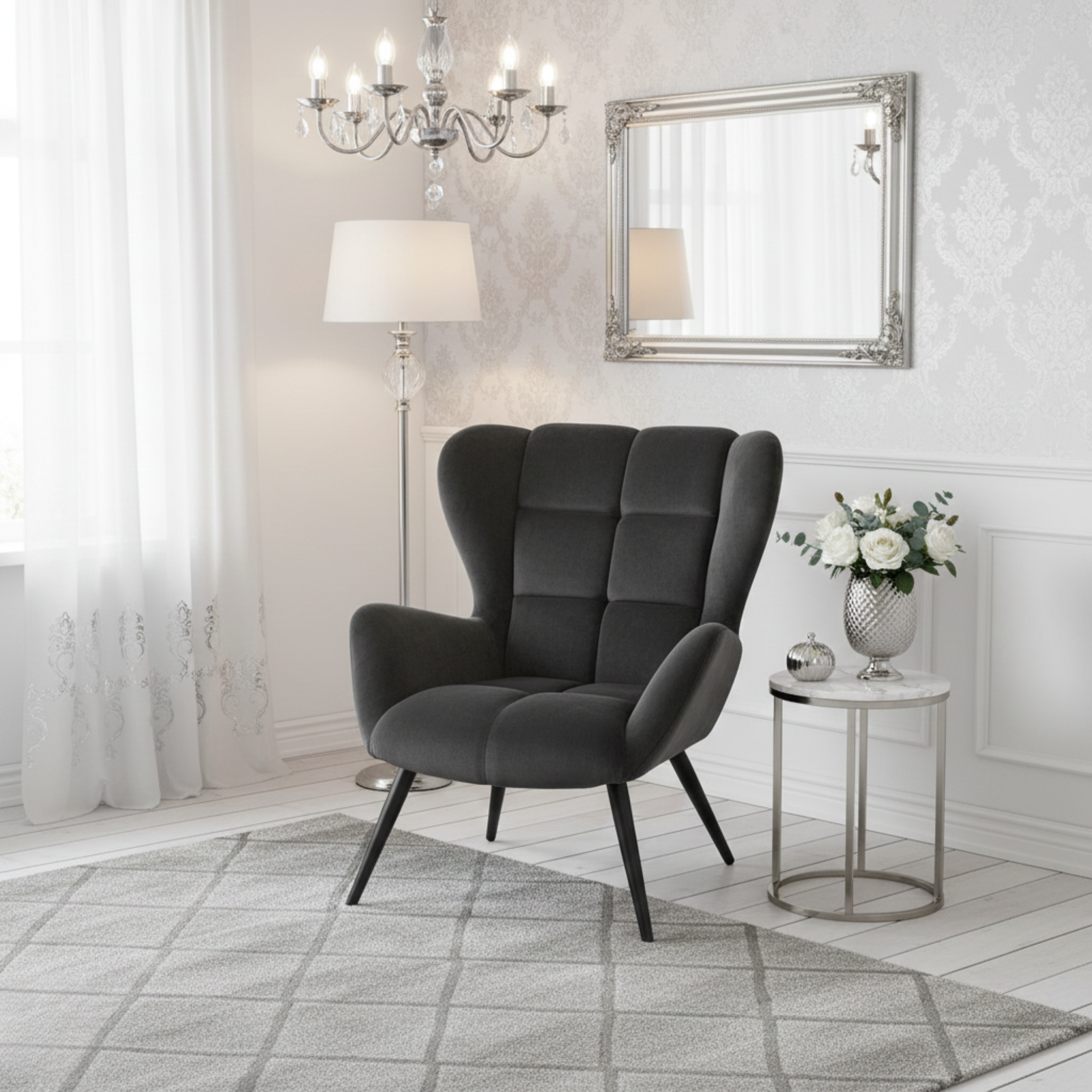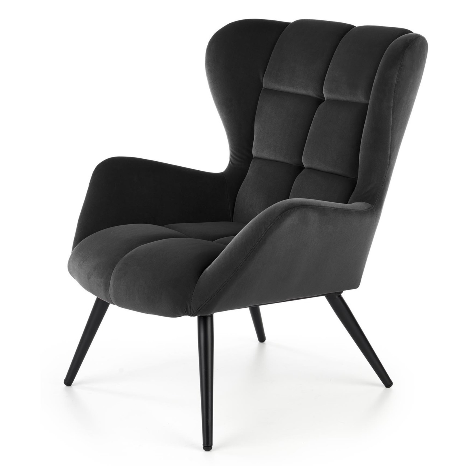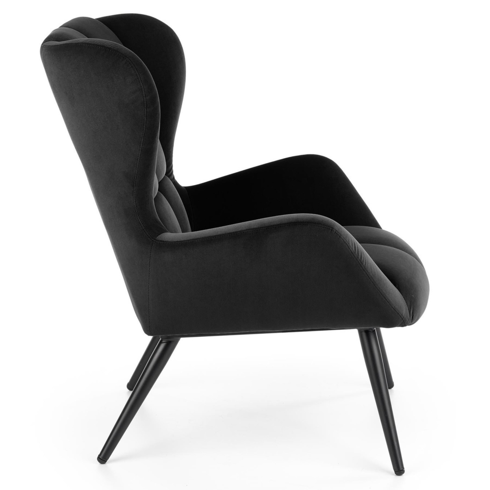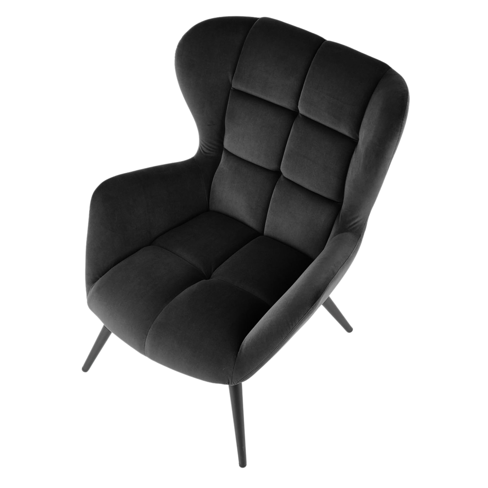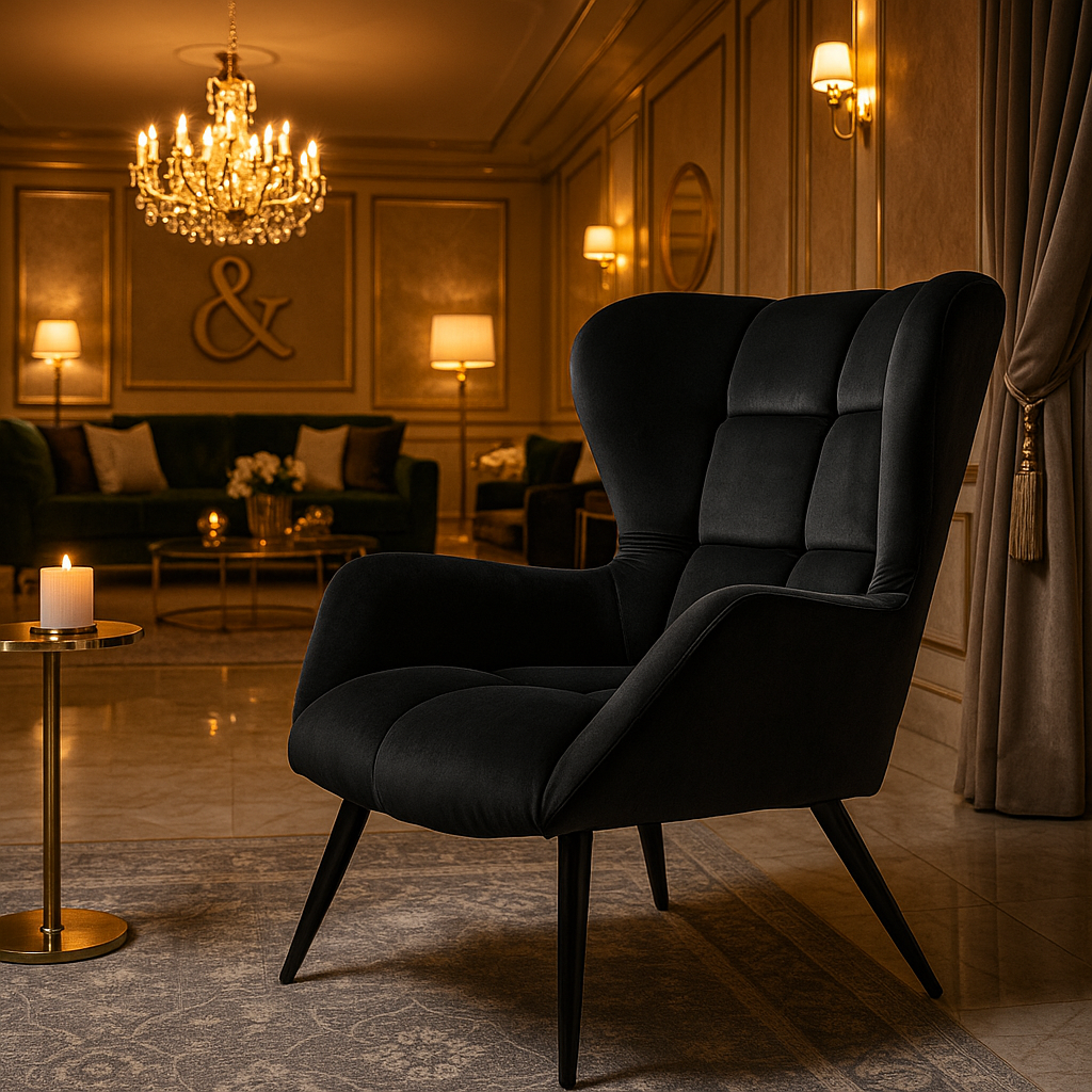 Fotel MADISON to elegancki fotel wypoczynkowy typu uszak, stworzony z myślą o komforcie i nowoczesnym stylu wnętrz. Wyprofilowane oparcie zapewnia stabilne podparcie pleców i głowy, a miękka tapicerka z aksamitnej tkaniny velvet podnosi komfort codziennego użytkowania. Głęboka czerń nadaje fotelowi wyrafinowanego charakteru i doskonale uzupełnia aranżacje salonu.