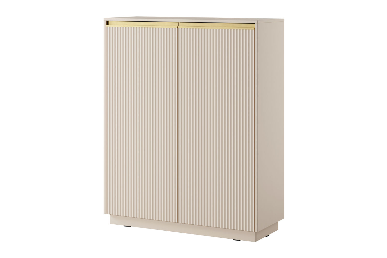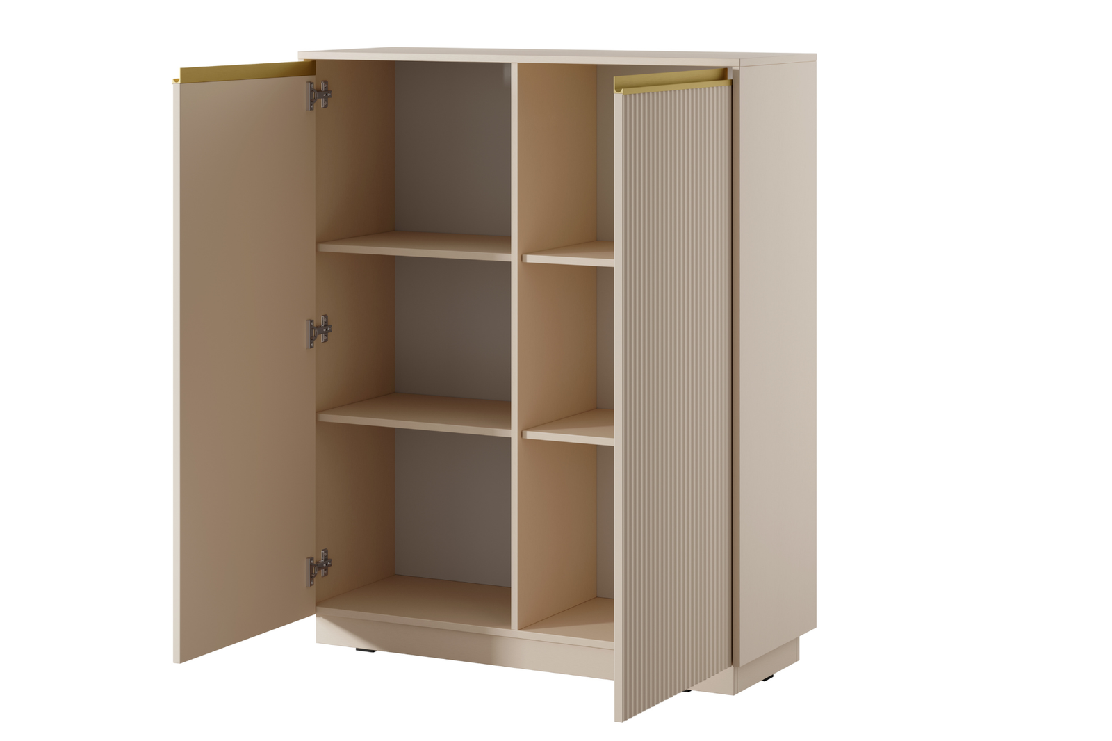 Komoda PRESTIGE łączy estetykę z praktycznością, oferując pojemne wnętrze do przechowywania różnego rodzaju akcesoriów, dokumentów lub tekstyliów. Klasyczne drzwiczki uchylne ułatwiają dostęp do wnętrza, a aluminiowe uchwyty w kolorze szczotkowanego złota dodają elegancji i zapewniają wygodne otwieranie. Dzięki gładkim powierzchniom i solidnej konstrukcji mebel jest łatwy w utrzymaniu czystości, a jego wysoka forma pozwala maksymalnie wykorzystać przestrzeń. Komoda doskonale sprawdzi się w salonie, sypialni lub gabinecie, wnosząc do pomieszczenia nowoczesny charakter.