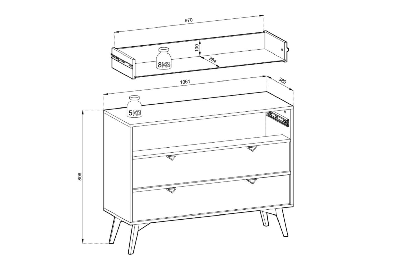 - Korpus wykonany z solidnej płyty laminowanej 16 mm.
