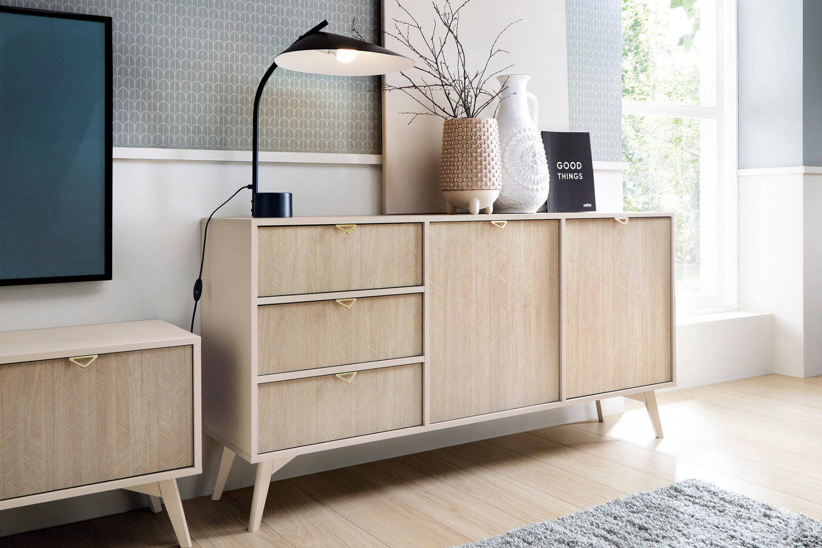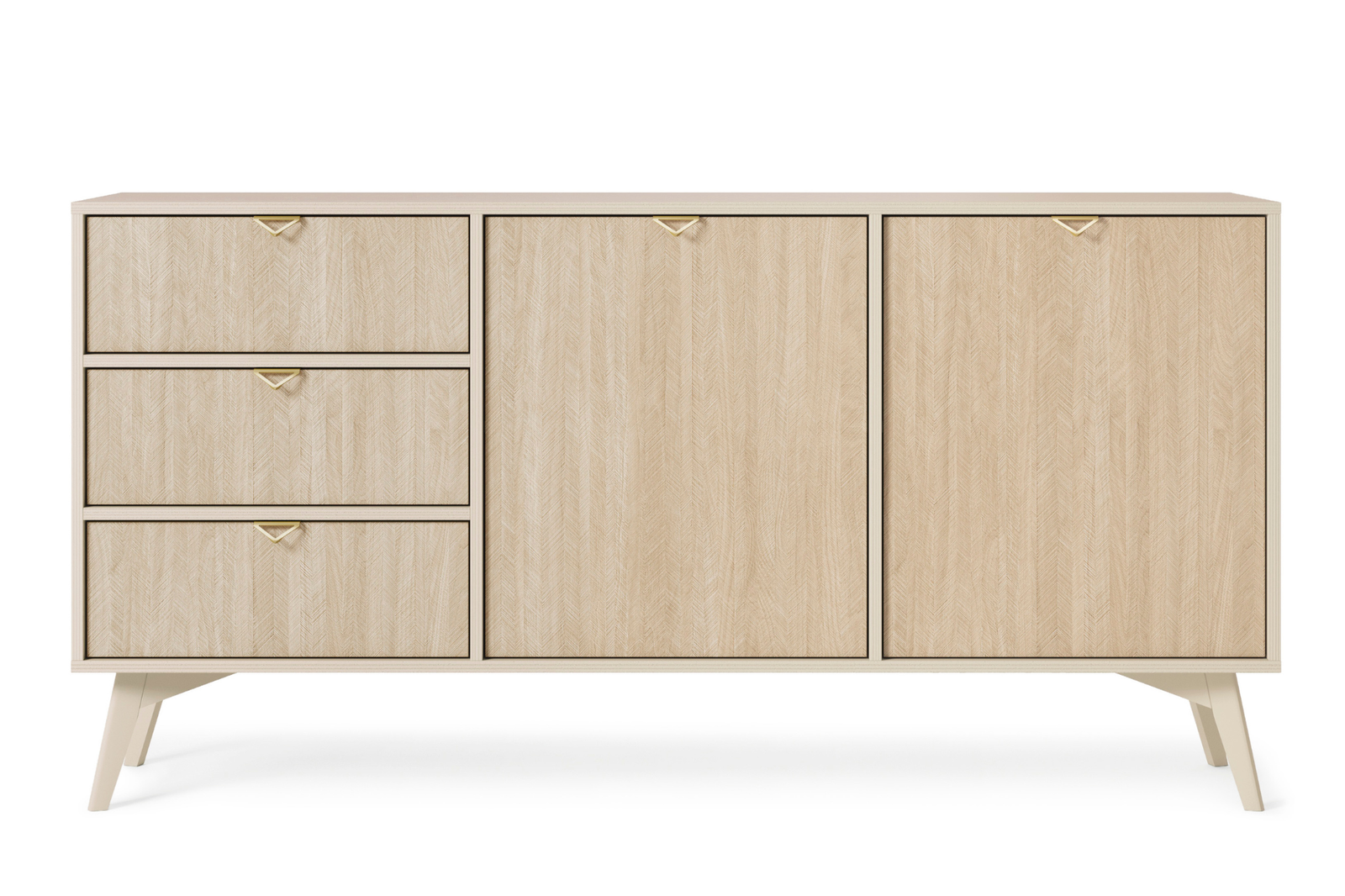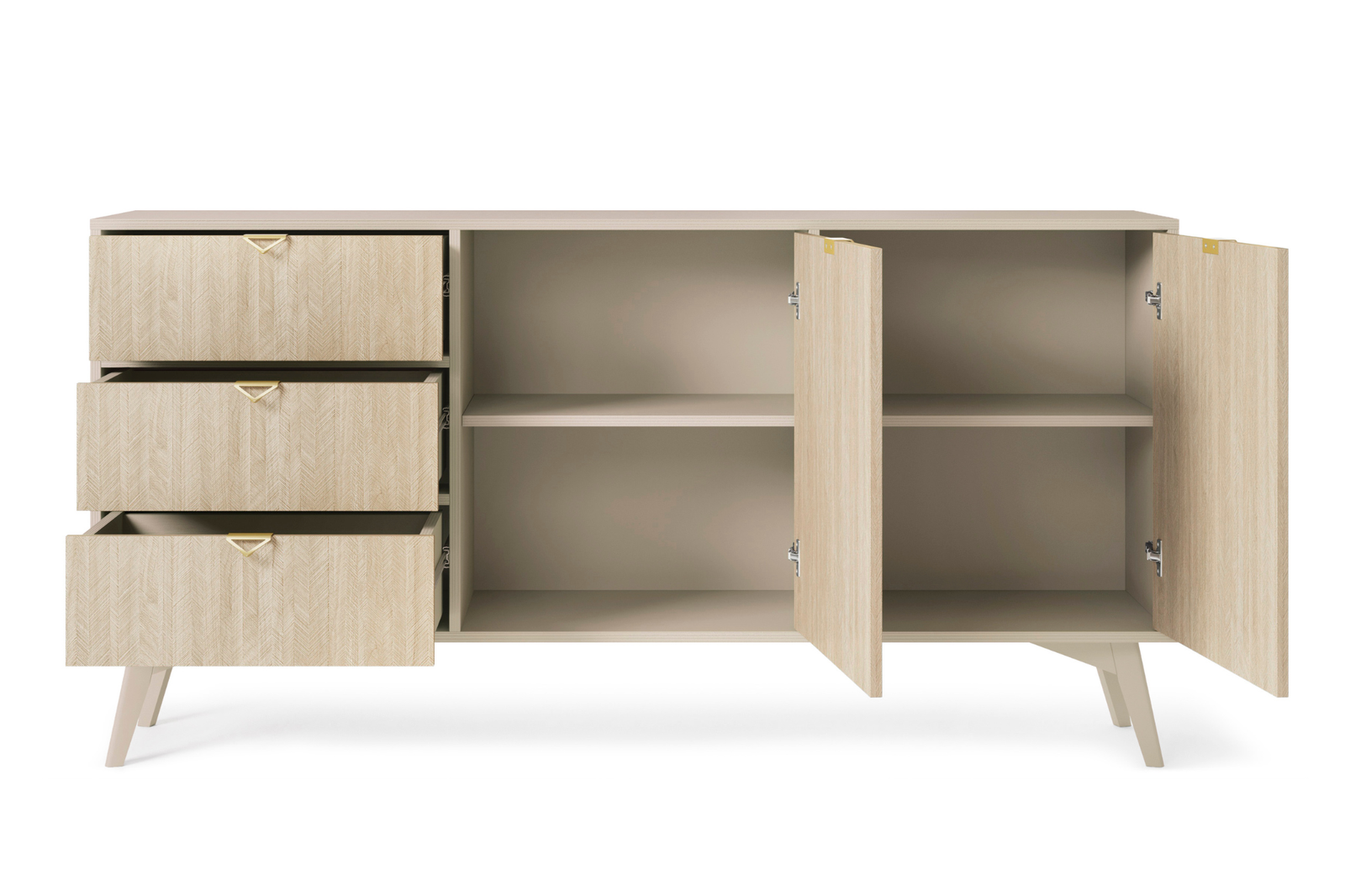 Komoda VINORA 158 cm – Boho, Jodełka Scandi, Beż Piaskowy