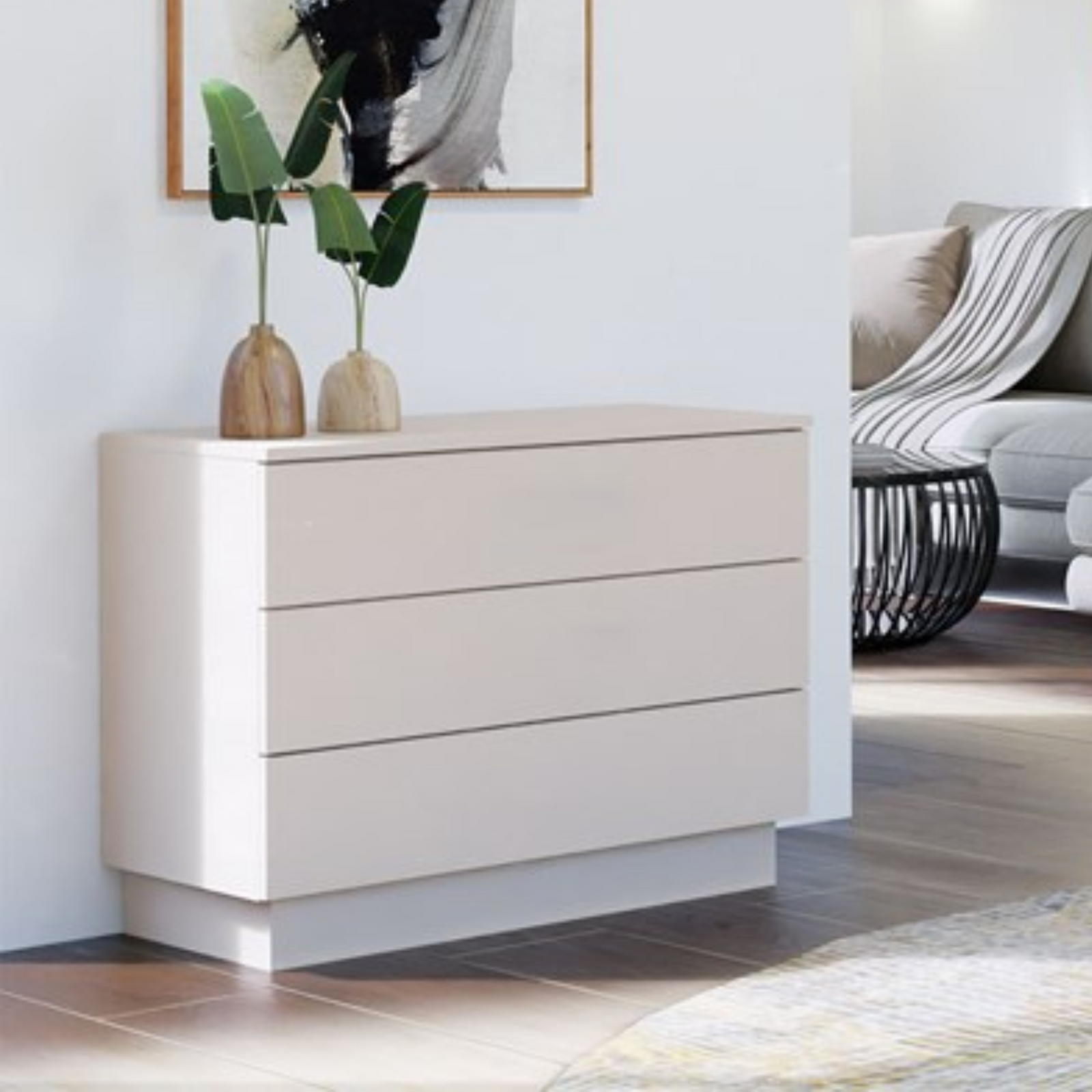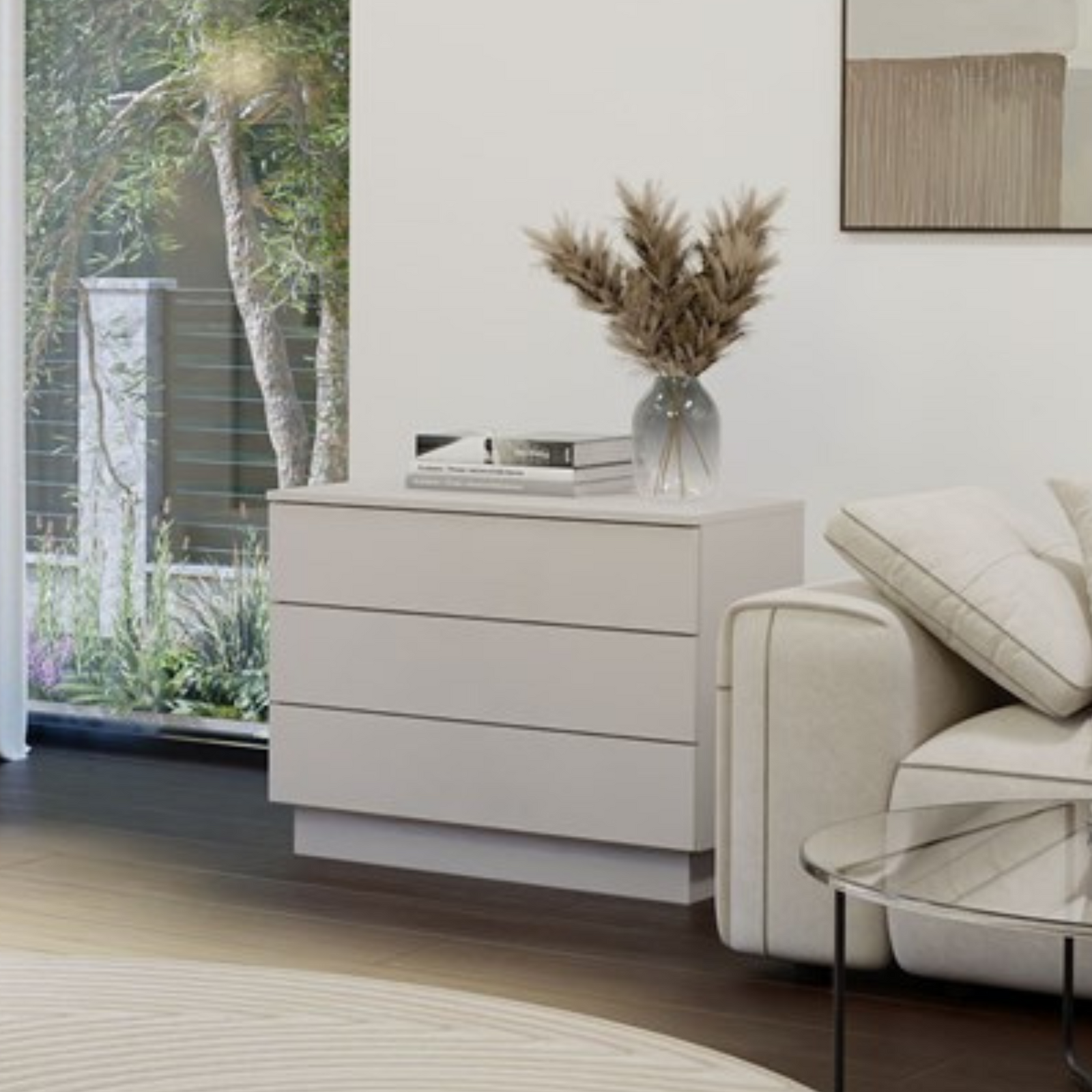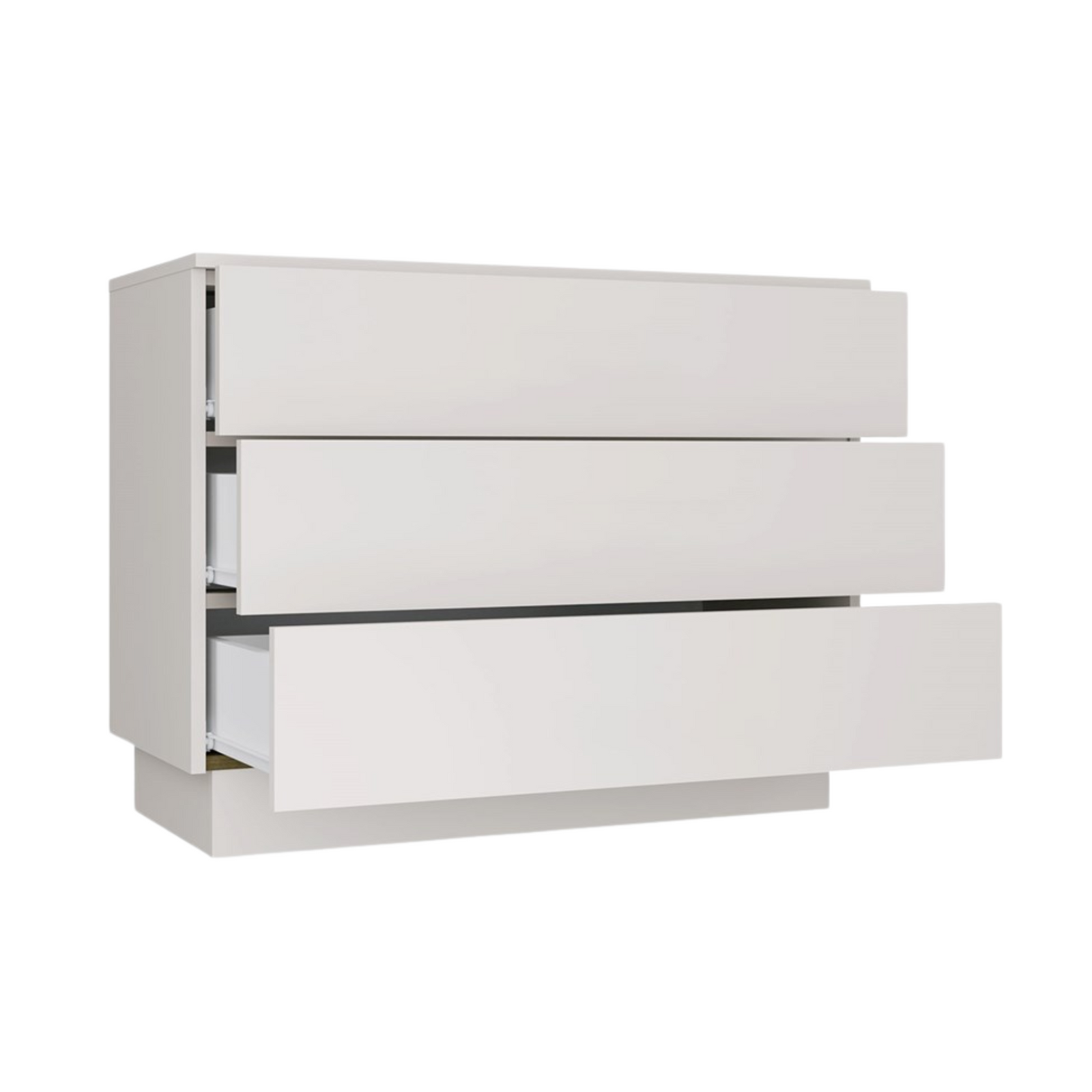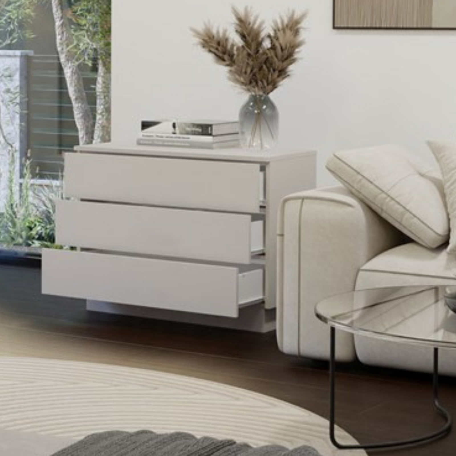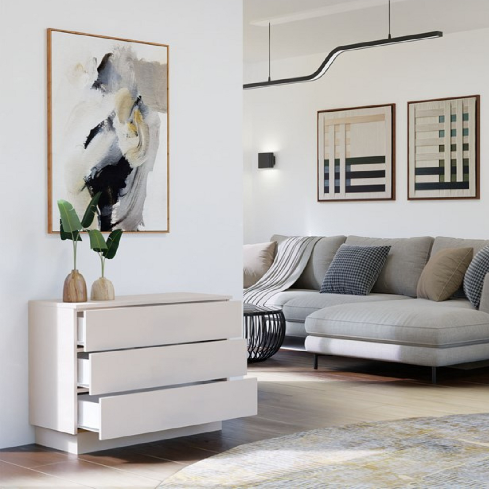 Komoda ZAMBER to nowoczesny i wszechstronny mebel, który sprawdzi się w każdym domu i każdym pomieszczeniu. Komoda z szufladami pasuje do salonu, sypialni, pokoju, przedpokoju i biura. Wyposażona w trzy przestronne szuflady, oferuje dużo miejsca na przechowywanie odzieży, dokumentów i innych drobiazgów. Z szufladami łatwo utrzymasz porządek i zorganizujesz swoje rzeczy.
