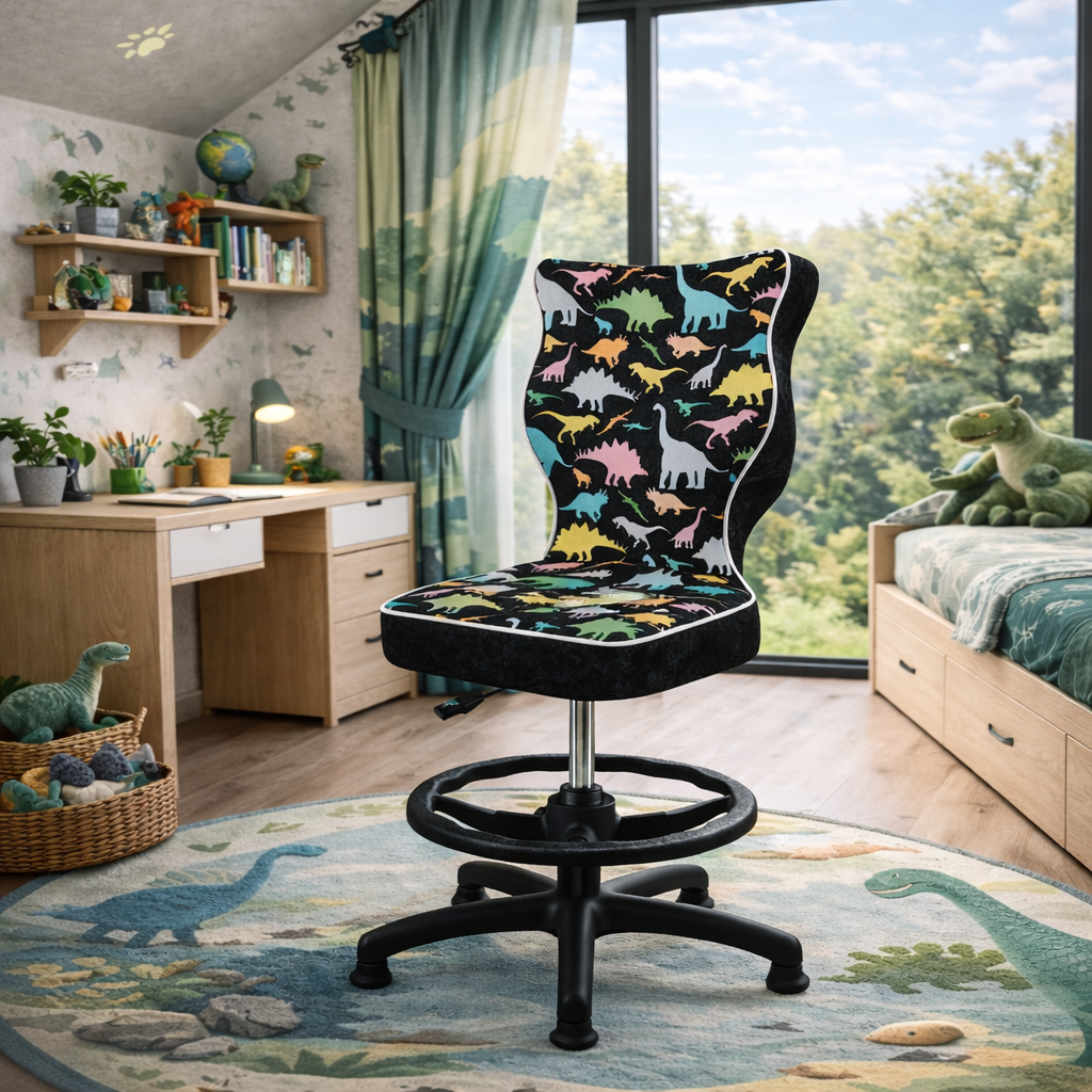 Krzesło dziecięce ergonomiczne LUMI 4 - Dinozaury / Czarna Noga