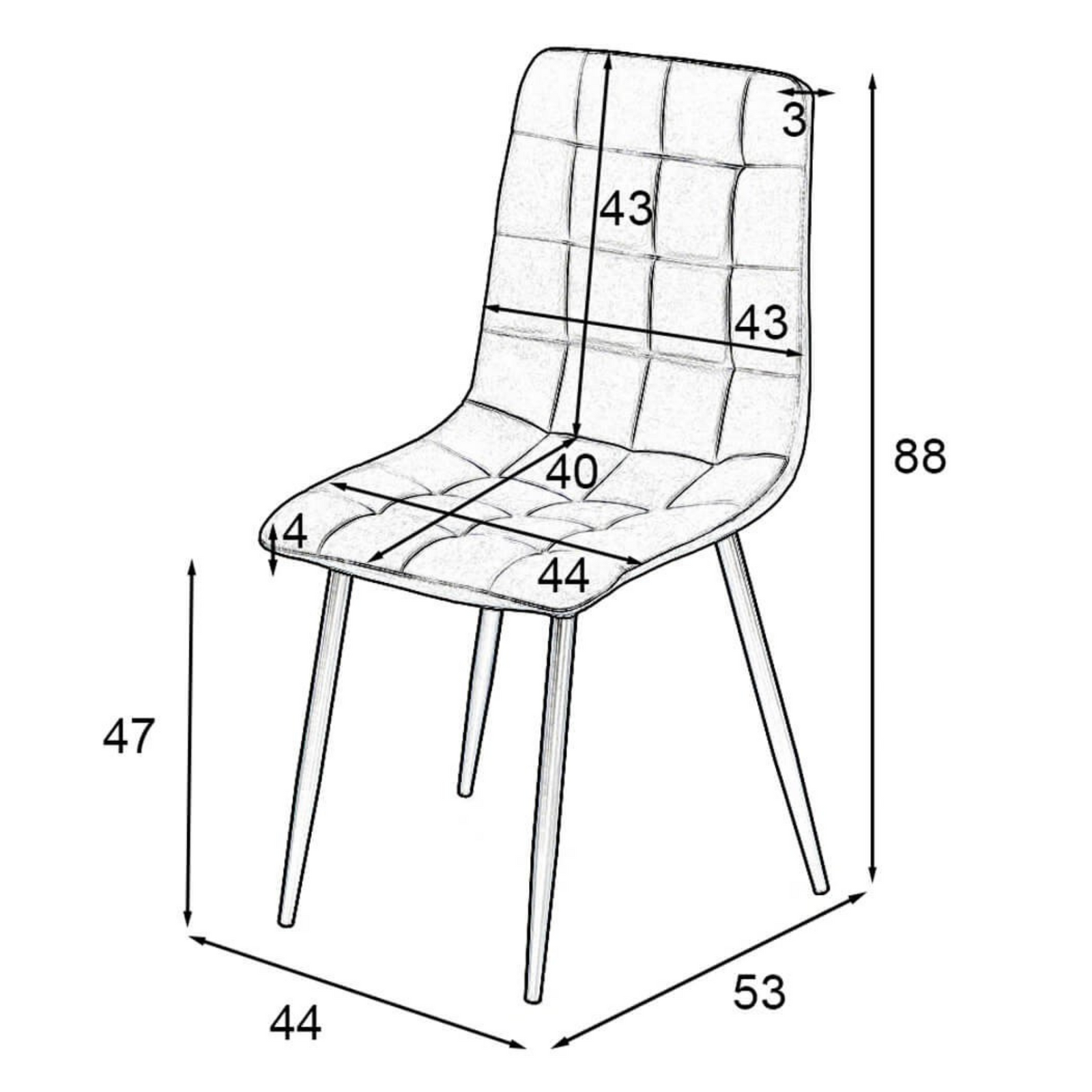 Krzesło zaprojektowane zostało z myślą o codziennym użytkowaniu. Stelaż krzesła wykonany został z elementów metalowych, malowanych proszkowo, co zapewnia trwałość. Konstrukcja i układ smukłych, wysokich nóżek gwarantują idealną stabilność krzesła. Wysokiej jakości tkanina welurowa pokrywająca siedzisko zapewnia wygodę i podkreśla estetykę nowoczesnego krzesła.