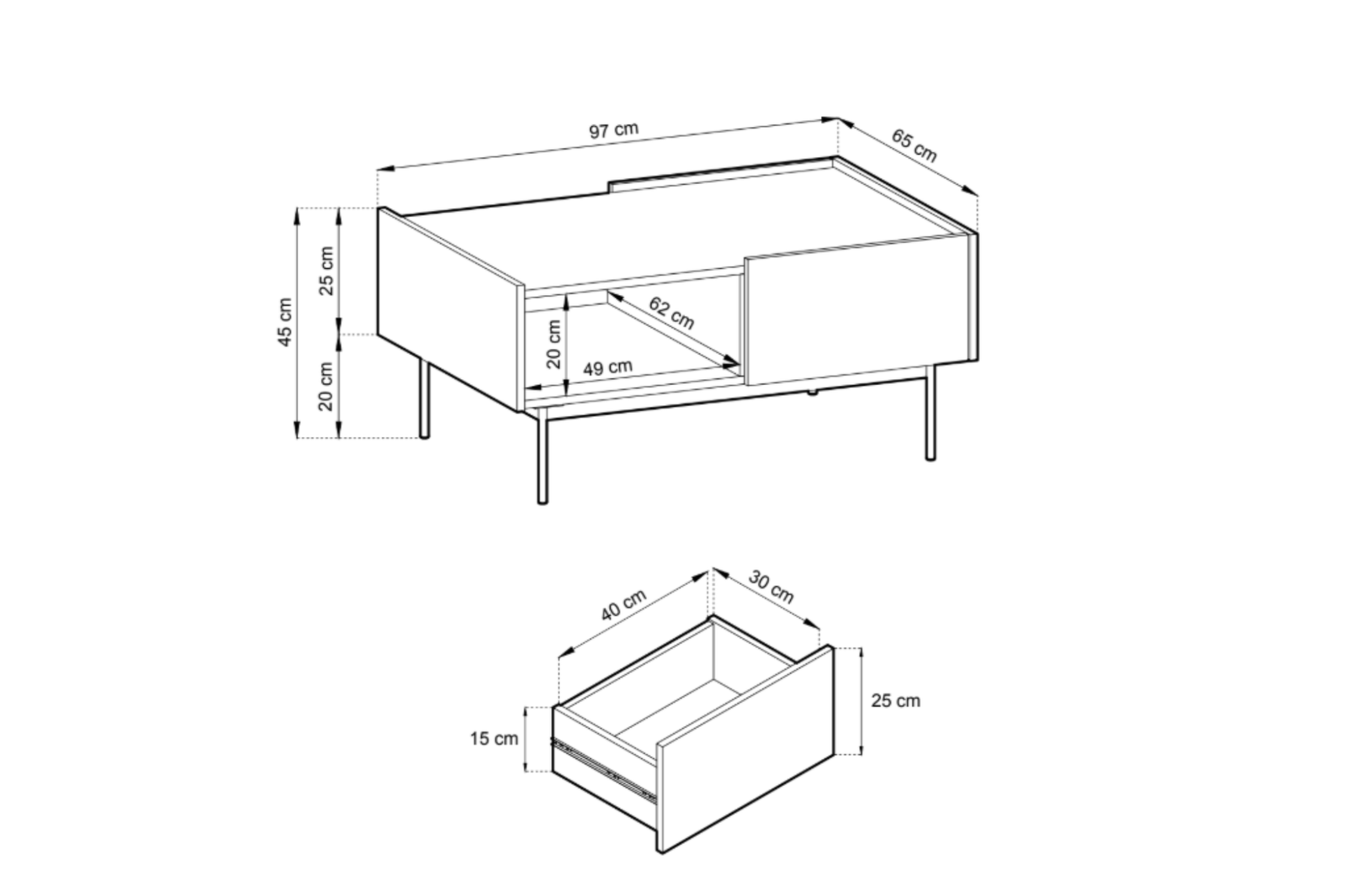 Ława COLETTE to idealne rozwiązanie dla osób ceniących porządek i funkcjonalność. Pojemna wnęka oraz praktyczne szufladki pozwalają przechować drobiazgi lub czasopisma, utrzymując porządek w salonie. Blat z bocznymi wstawkami zabezpiecza przed zsuwaniem się filiżanek, talerzyków czy dekoracji, co jest szczególnie przydatne w domu z dziećmi. Metalowe nóżki nadają konstrukcji lekkości i stabilności, a jednocześnie ułatwiają czyszczenie pod meblem. To ława, która łączy styl, bezpieczeństwo i wygodę w jednym.