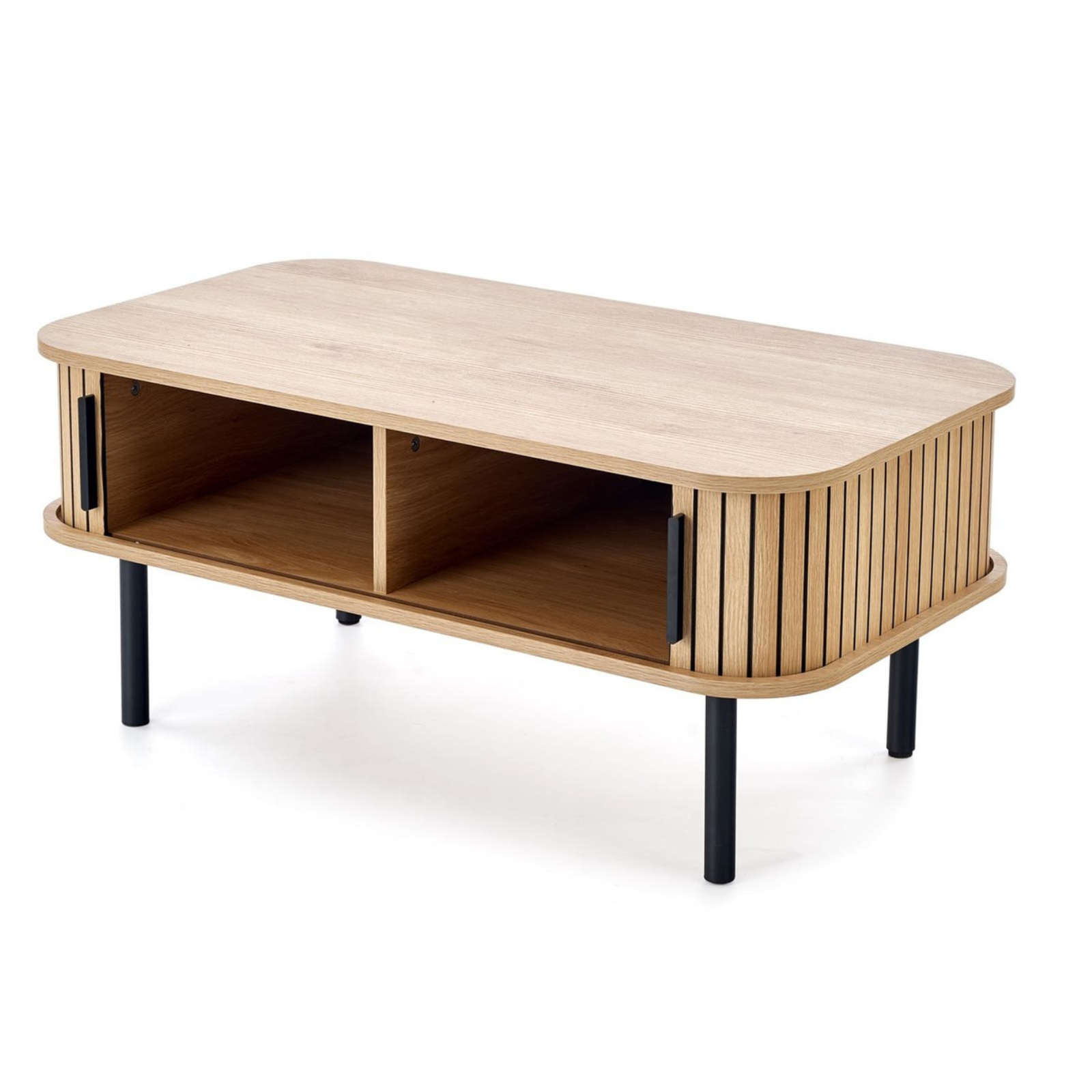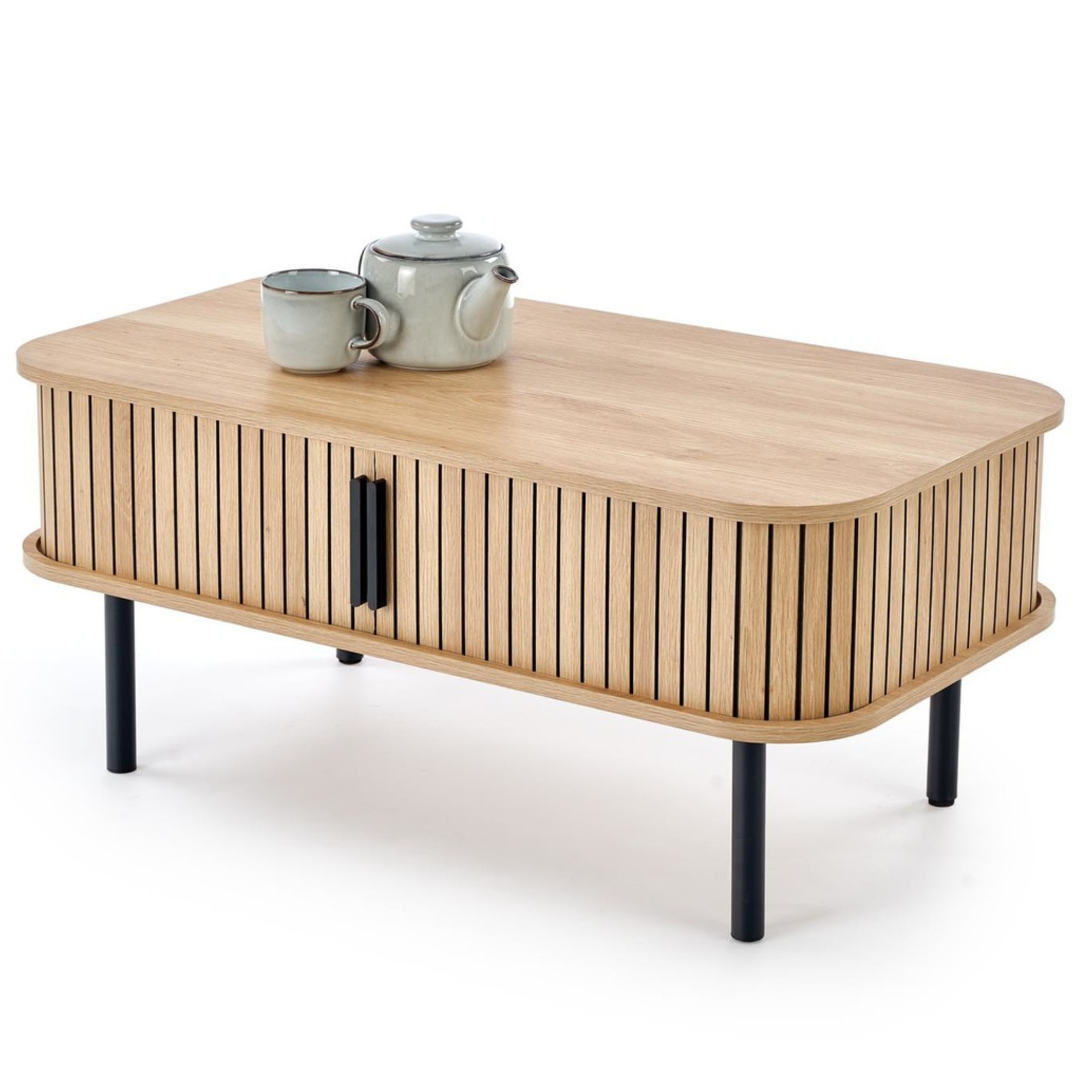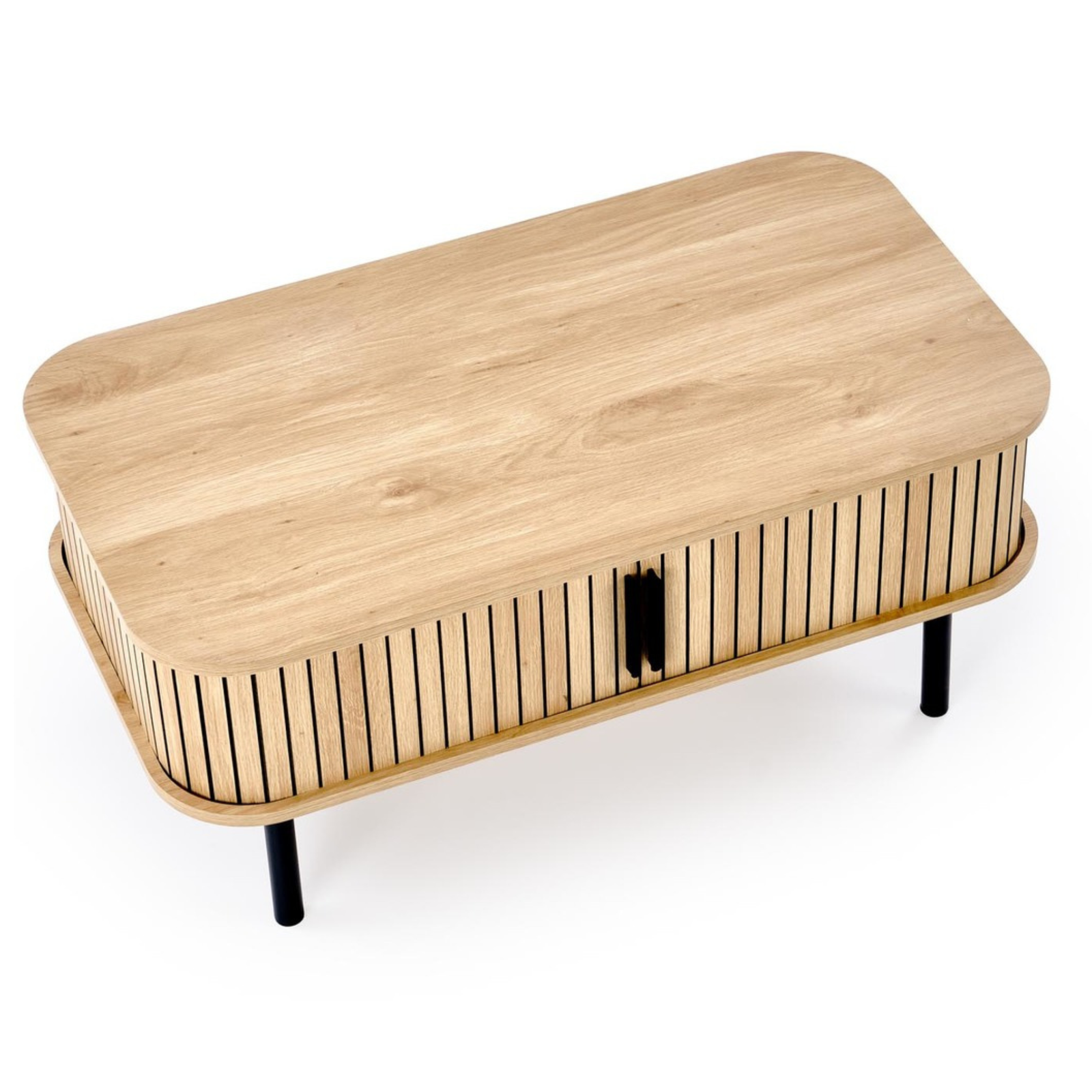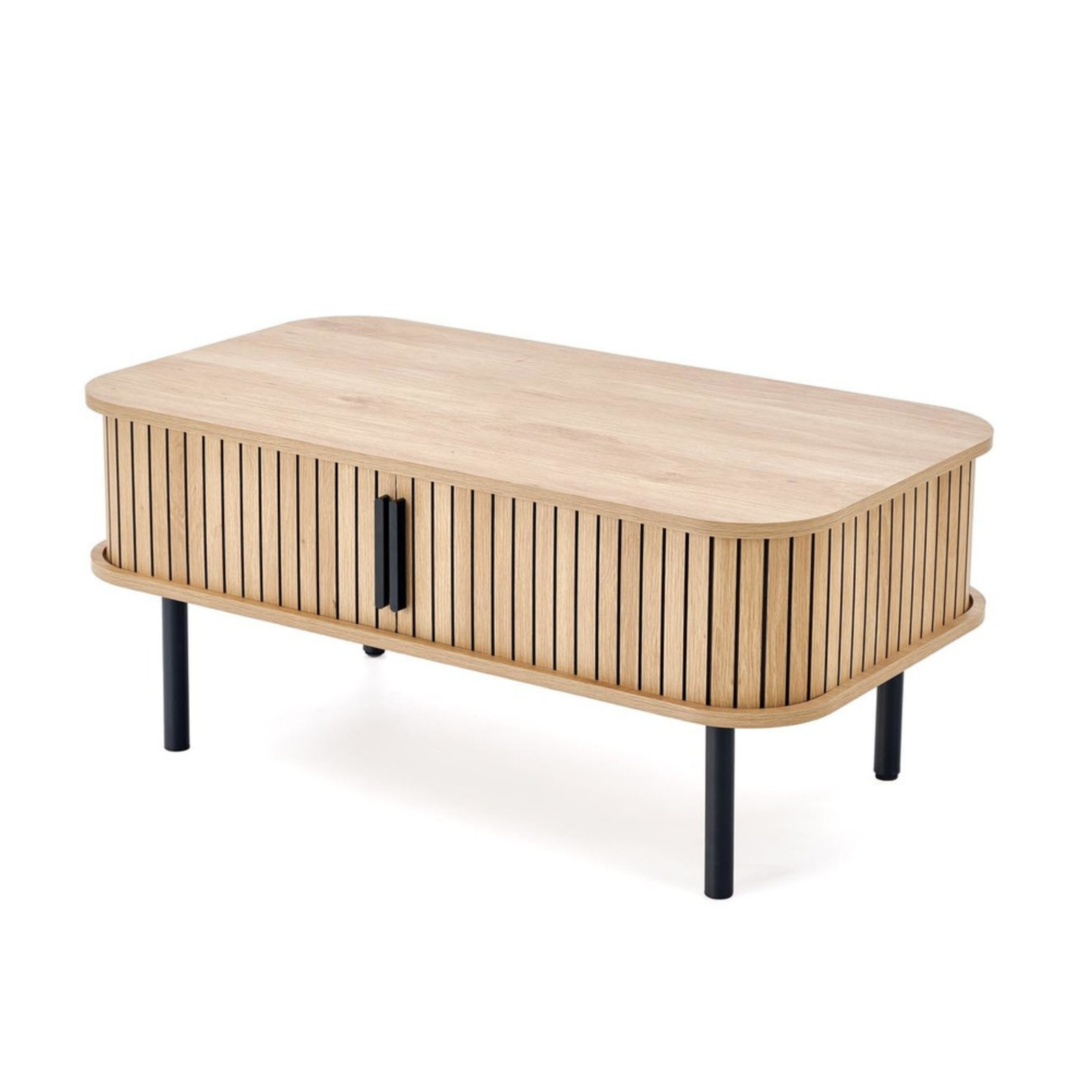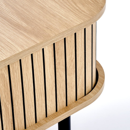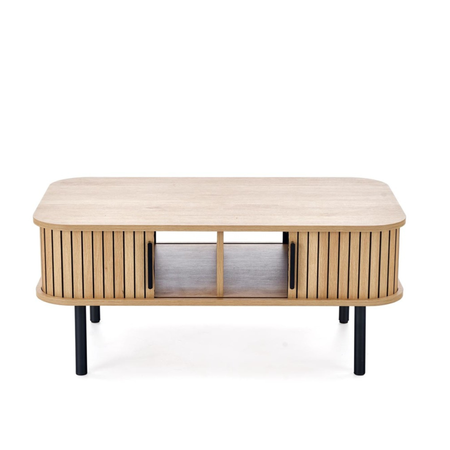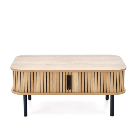 Ława OLIVIA została wykonana z wysokiej jakości materiałów, które gwarantują solidność i długowieczność. Blat z płyty MDF okleinowanej jest odporny na zarysowania i wilgoć, dzięki czemu zachowuje estetyczny wygląd przez lata. Stabilny, metalowy stelaż w kolorze czarnym zapewnia doskonałą wytrzymałość oraz nadaje meblowi loftowy charakter. Dodatkowy schowek pod blatem umożliwia przechowywanie drobnych akcesoriów, utrzymując porządek w salonie.