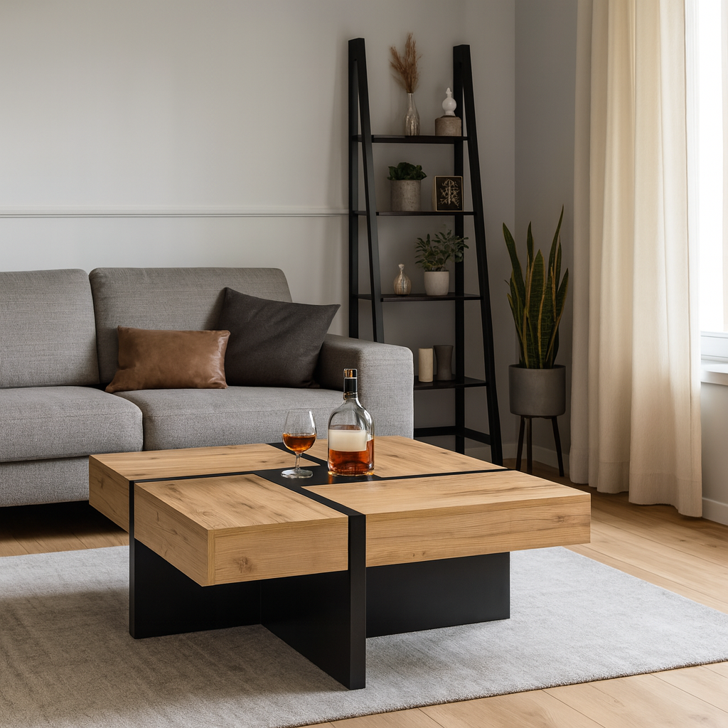 Model DEASY to doskonały wybór dla osób, które cenią estetykę i funkcjonalność w jednym. Połączenie czerni z naturalnym odcieniem dębu craft sprawia, że ława idealnie komponuje się z różnymi aranżacjami – od nowoczesnych po industrialne. Starannie dopracowane detale i solidne wykonanie zapewniają długotrwałe użytkowanie, a jej geometryczny kształt nadaje wnętrzu wyjątkowego stylu. To mebel, który łączy w sobie wygodę codziennego użytkowania i designerski wygląd.