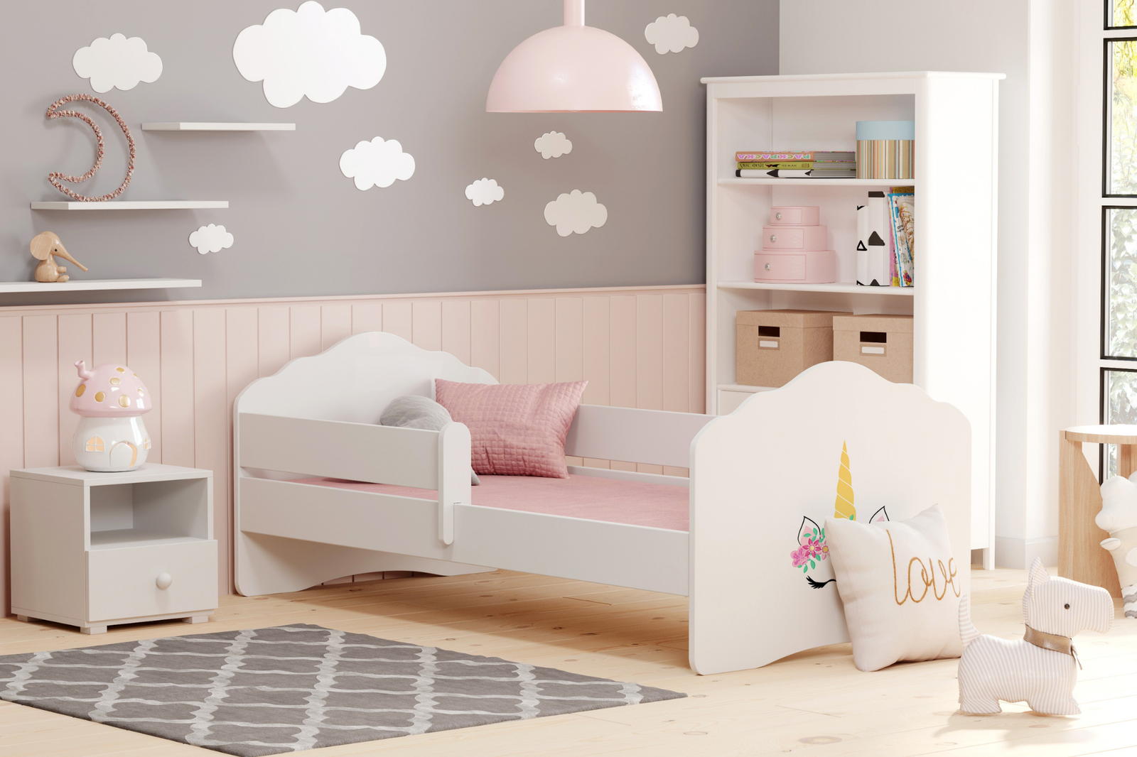Łóżko dziecięce FALA 140x70 barierka grafika - Jednorożec