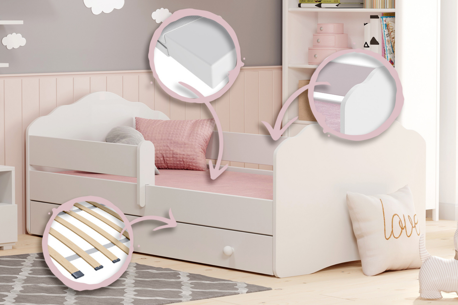 Łóżko dziecięce FALA 140x70 barierka szuflada materac - Biały