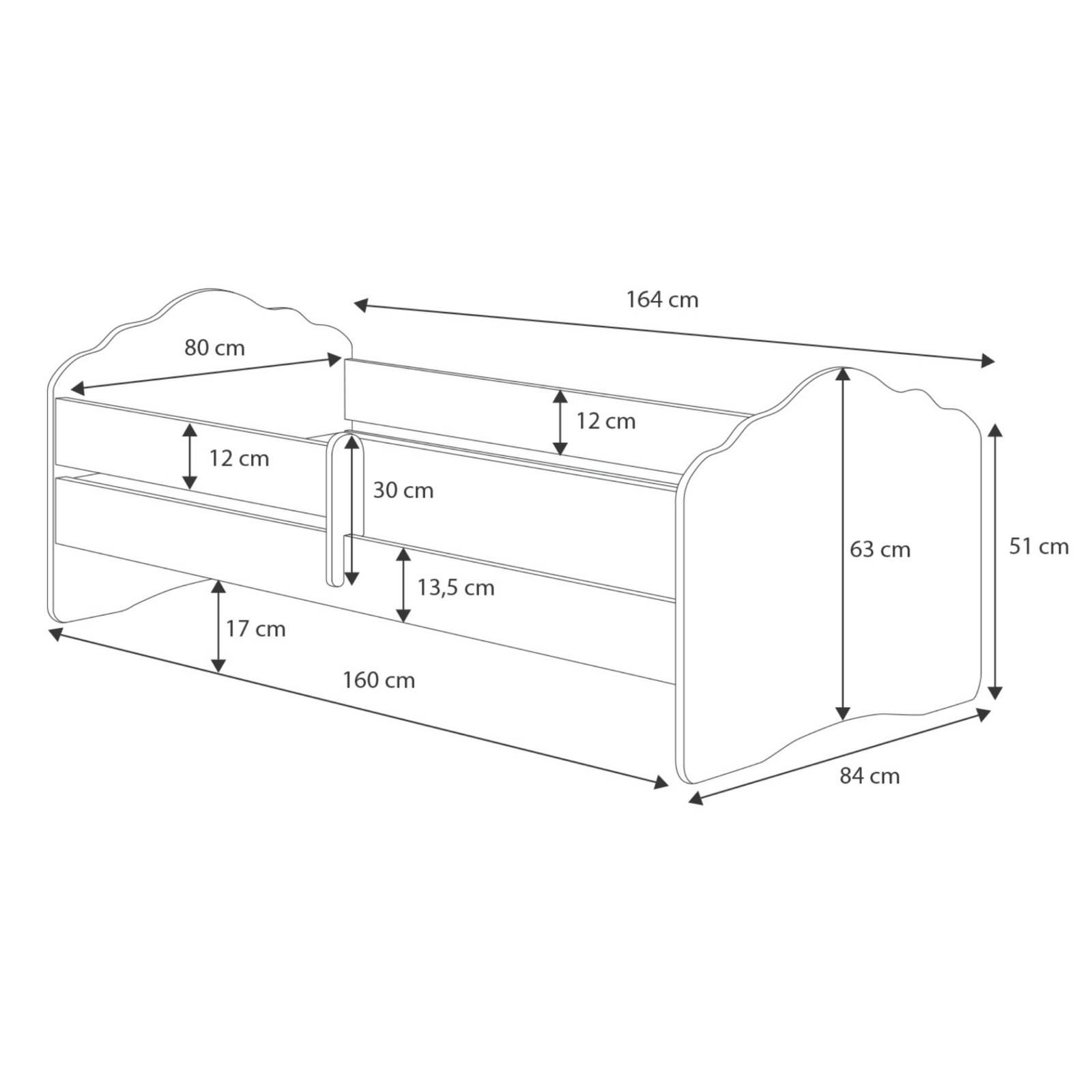 • • Łóżko: 164 cm x 84 cm x 63 cm