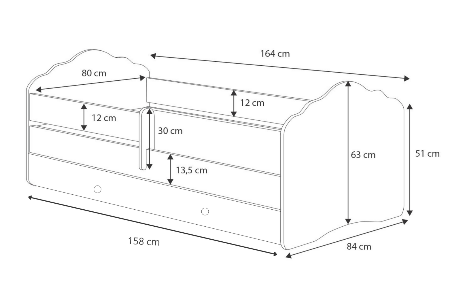 • • Łóżko: 164 cm x 84 cm x 63 cm