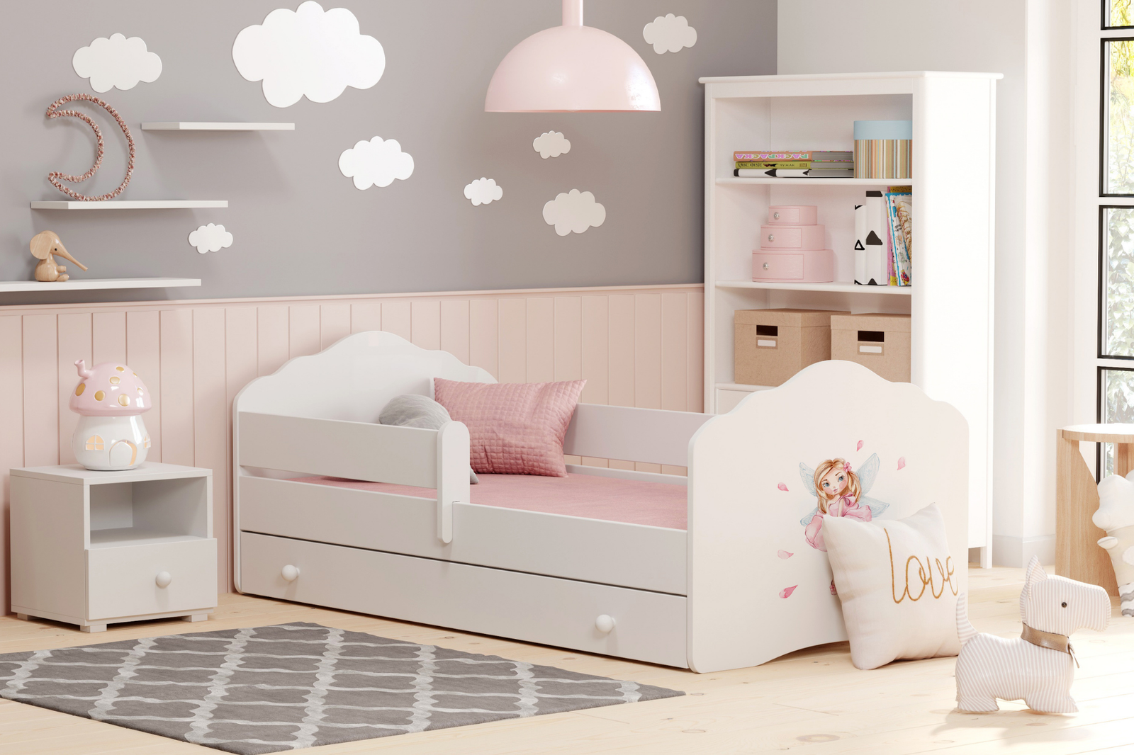 Łóżko dziecięce FALA 160x80 barierka szuflada grafika - Dziewczynka ze skrzydełkami