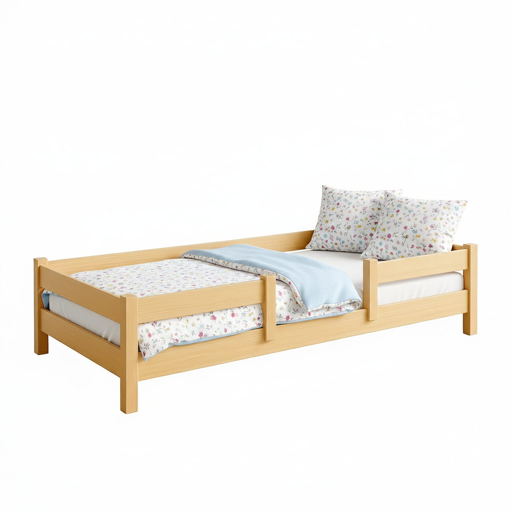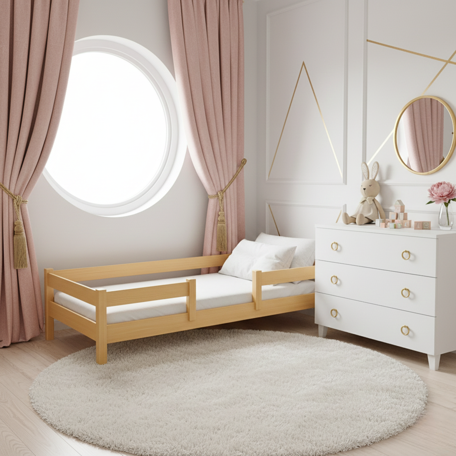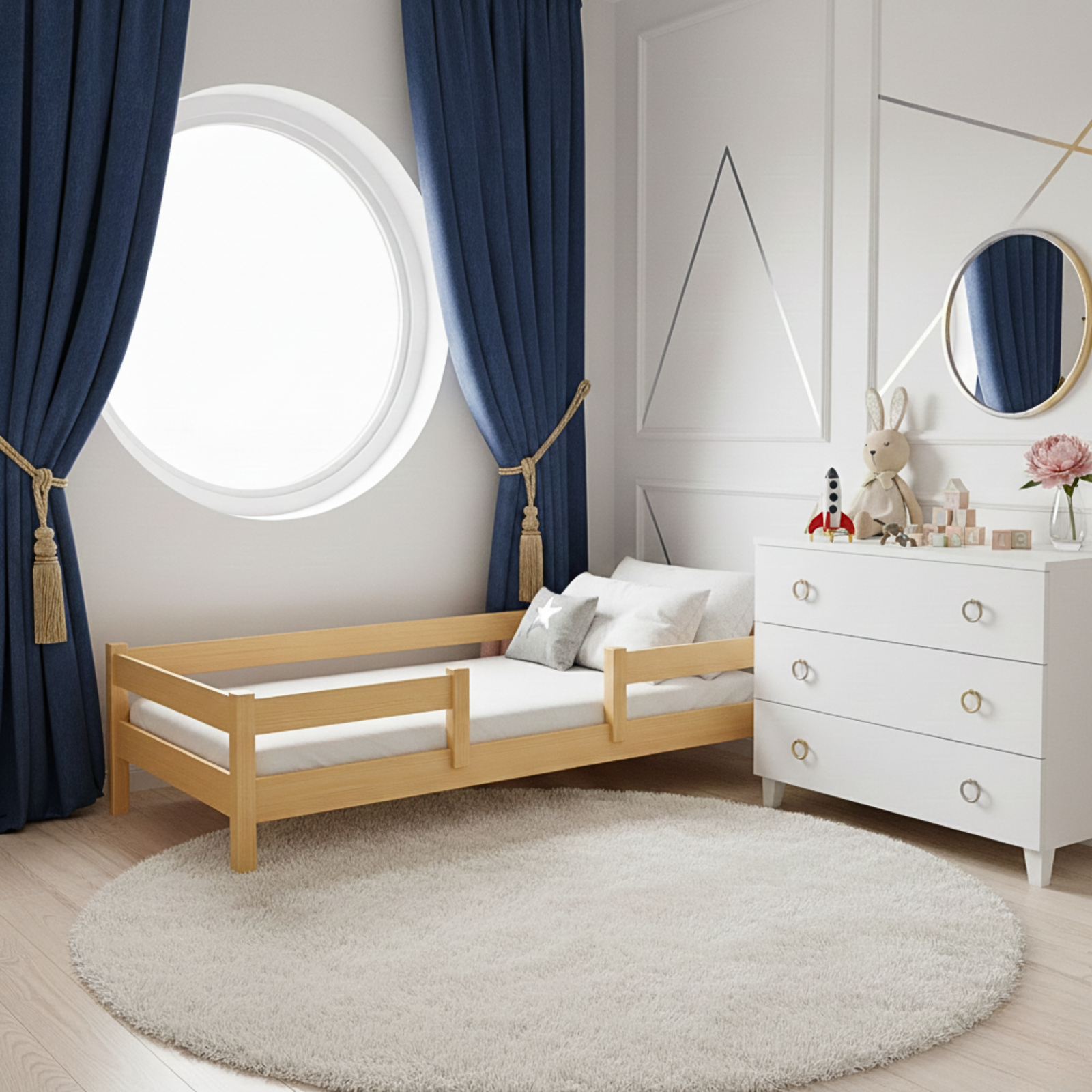 Łóżko LOFTO w rozmiarze 140×70 cm to bezpieczne, naturalne i estetyczne rozwiązanie stworzone z myślą o zdrowym i spokojnym śnie dziecka. Wykonane z litego, klejonego drewna sosnowego klasy I — całkowicie pozbawione lakierów i chemicznych substancji — tworzy przyjazną przestrzeń i doskonale wpisuje się w filozofię Montessori. Solidne wykonanie i naturalny charakter drewna sprawiają, że łóżko harmonijnie komponuje się z każdym dziecięcym wnętrzem.