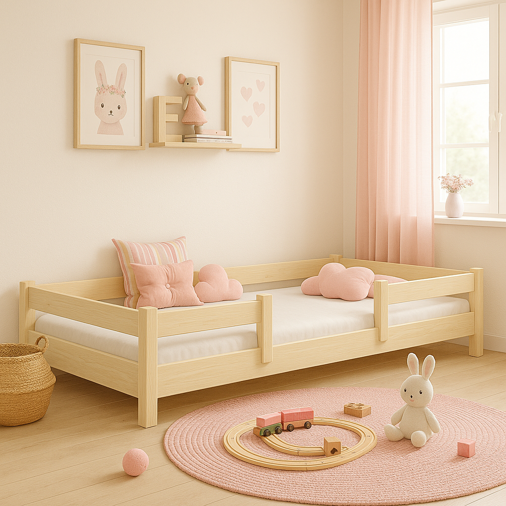 Łóżko LOFTO to idealny wybór dla rodziców ceniących naturalne materiały, wysoką jakość oraz bezpieczeństwo. Dzięki minimalistycznej formie i uniwersalnej stylistyce świetnie sprawdzi się zarówno w pokojach inspirowanych Montessori, jak i w nowoczesnych oraz klasycznych aranżacjach dziecięcych.