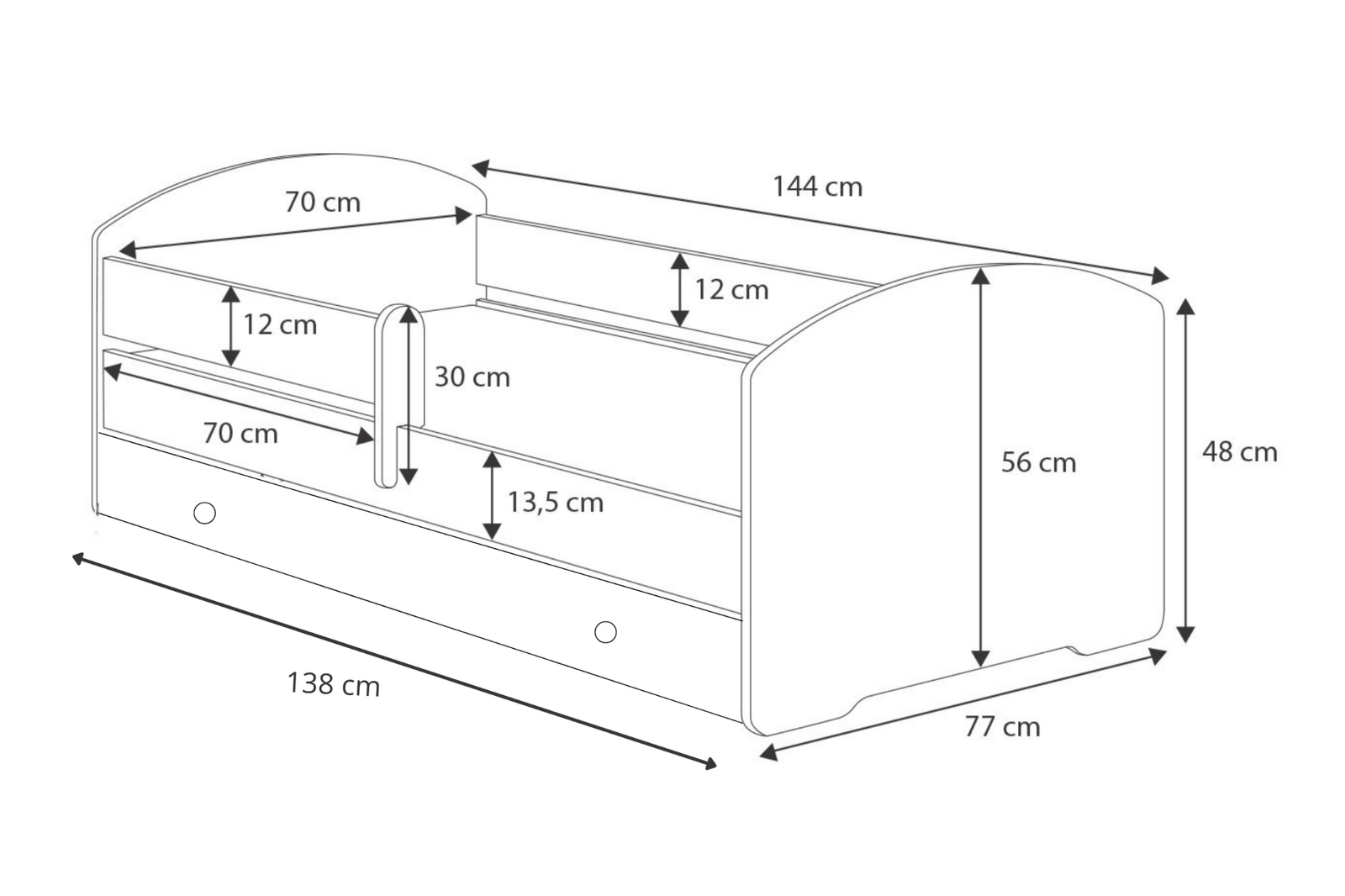 • • Łóżko: 144 cm x 77 cm x 56 cm