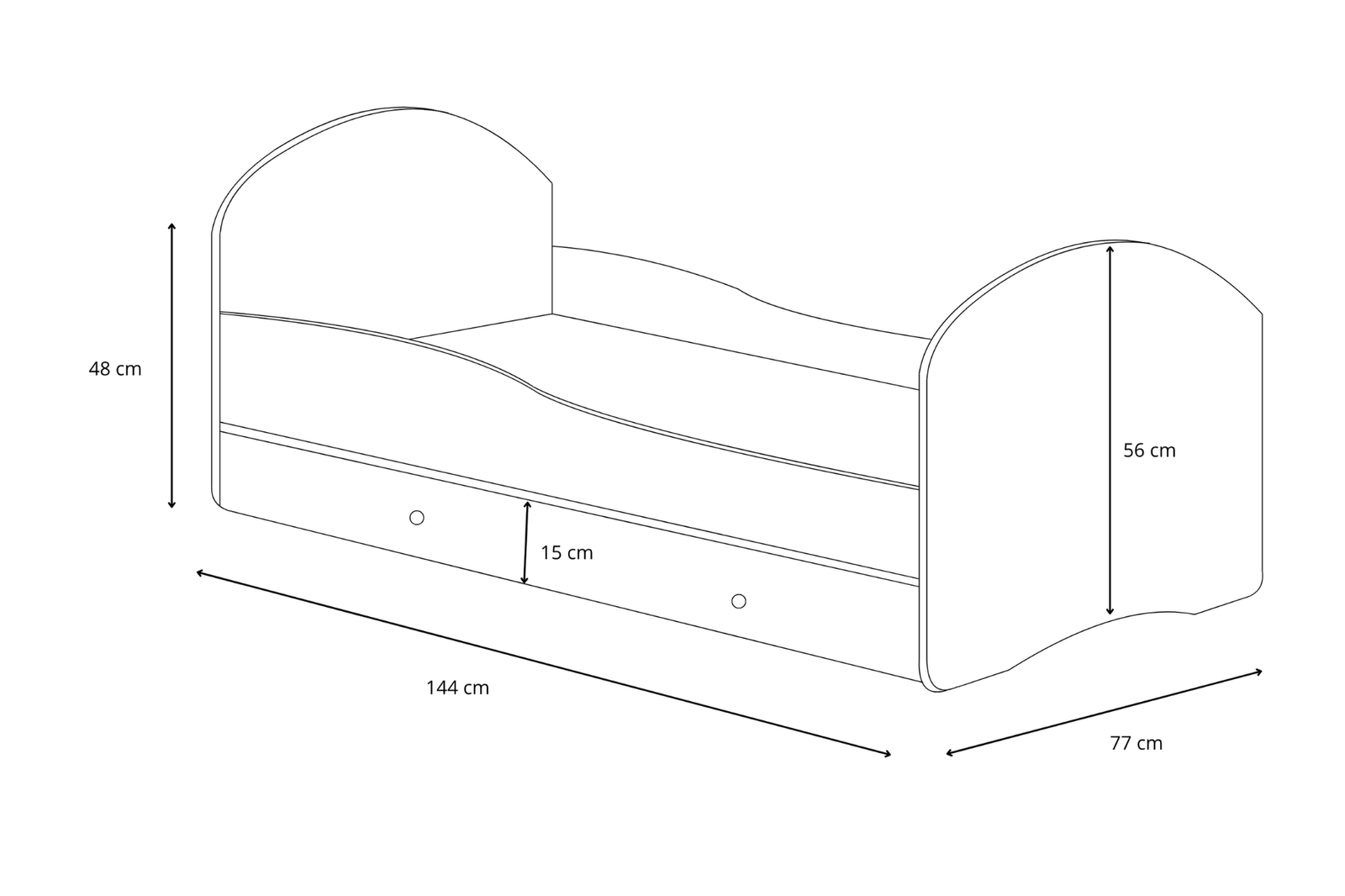 • • Łóżko: 144 cm x 77 cm x 56 cm