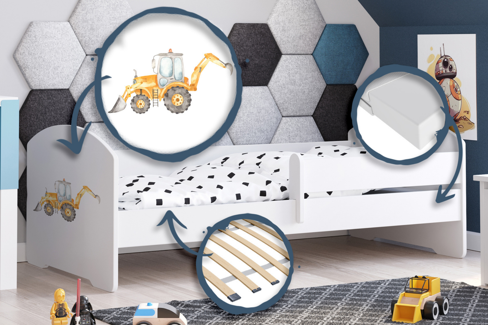 Łóżko dziecięce LUK 160x80 barierka grafika - Koparka