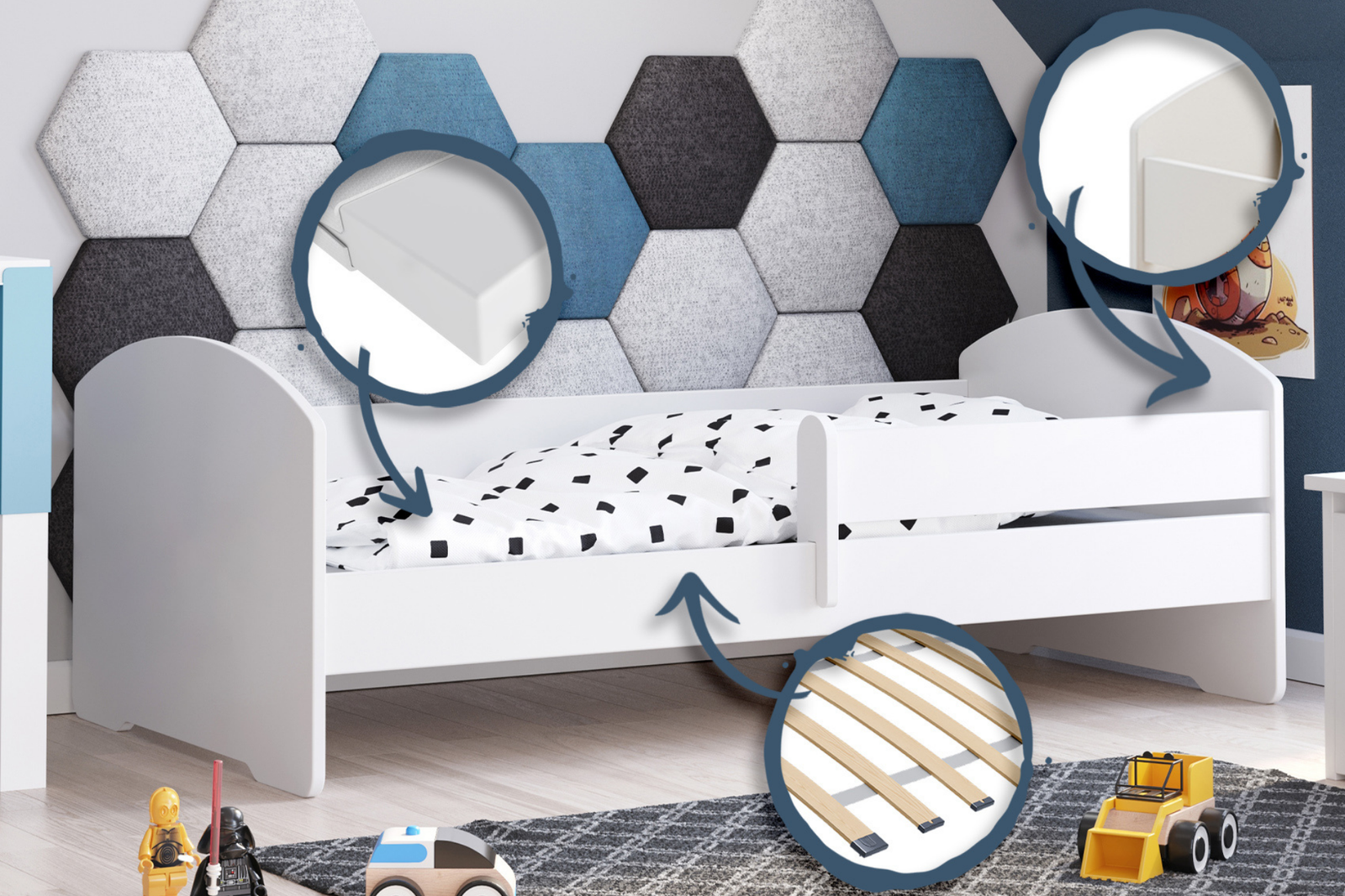 Model LUK został zaprojektowany z myślą o bezpieczeństwie Twojego dziecka. Łóżko wyposażone zostało w podwyższone boki chroniące przed wypadnięciem. Rozwiązaniem dla tych, co śpią nieco bardziej energicznie jest barierka zabezpieczająca, którą można zamontować po prawej lub lewej stronie. Taka możliwość nie tylko chroni dziecko, ale też ułatwia dostęp do niego. Dowolność w wyborze strony przymocowania barierki pozostawia wygodne wejście do łóżka, ale również zapewnia komfort podczas urządzania pokoju.