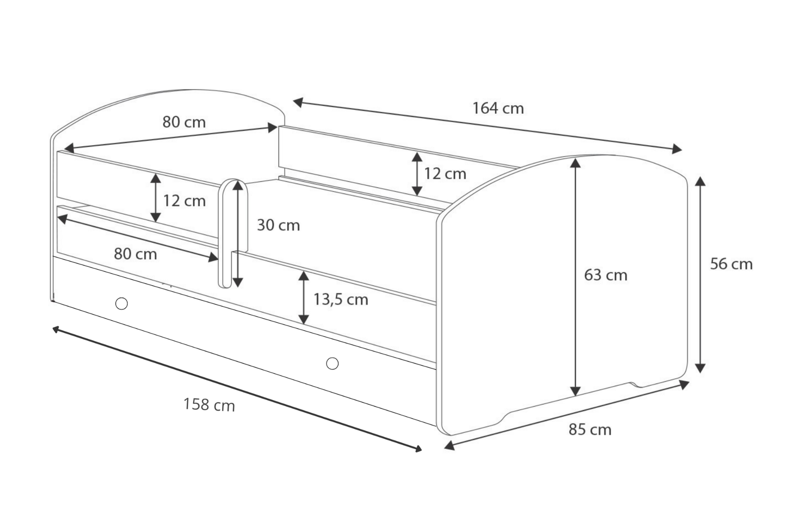 Model LUK został zaprojektowany z myślą o bezpieczeństwie Twojego dziecka. Łóżko wyposażone zostało w podwyższone boki chroniące przed wypadnięciem. Rozwiązaniem dla tych, co śpią nieco bardziej energicznie jest barierka zabezpieczająca, którą można zamontować po prawej lub lewej stronie. Taka możliwość nie tylko chroni dziecko, ale też ułatwia dostęp do niego. Dowolność w wyborze strony przymocowania barierki pozostawia wygodne wejście do łóżka, ale również zapewnia komfort podczas urządzania pokoju. Również szufladę można zamontować z lewej lub prawej strony, dzięki czemu zachowasz pełną swobodę w aranżacji przestrzeni.