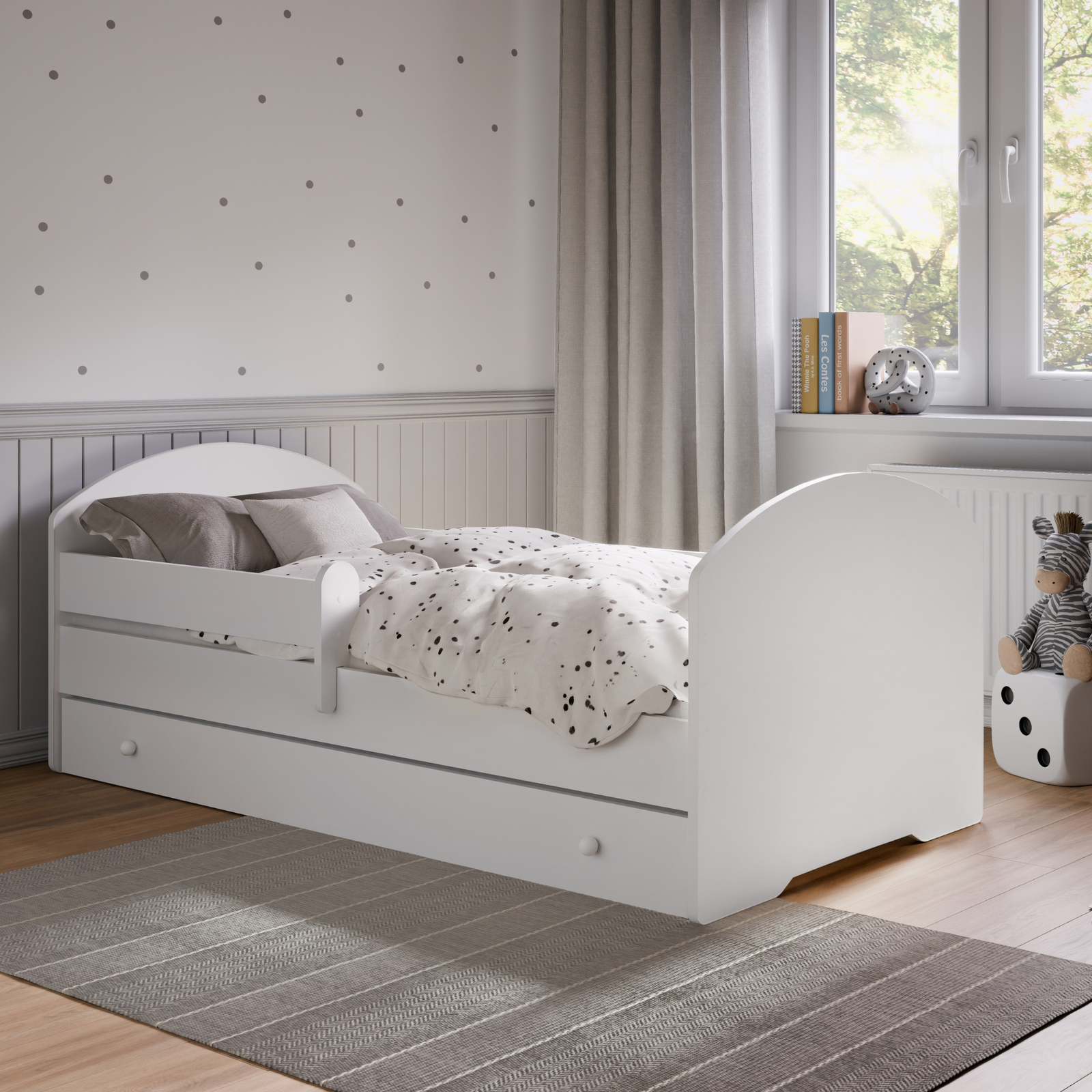 ŁÓŻKO DZIECIĘCE LUK Z BARIERKĄ I SZUFLADĄ