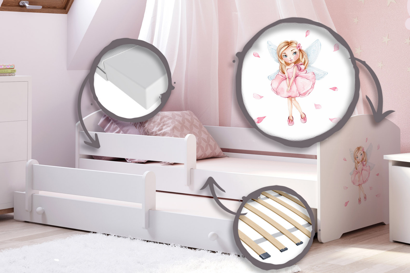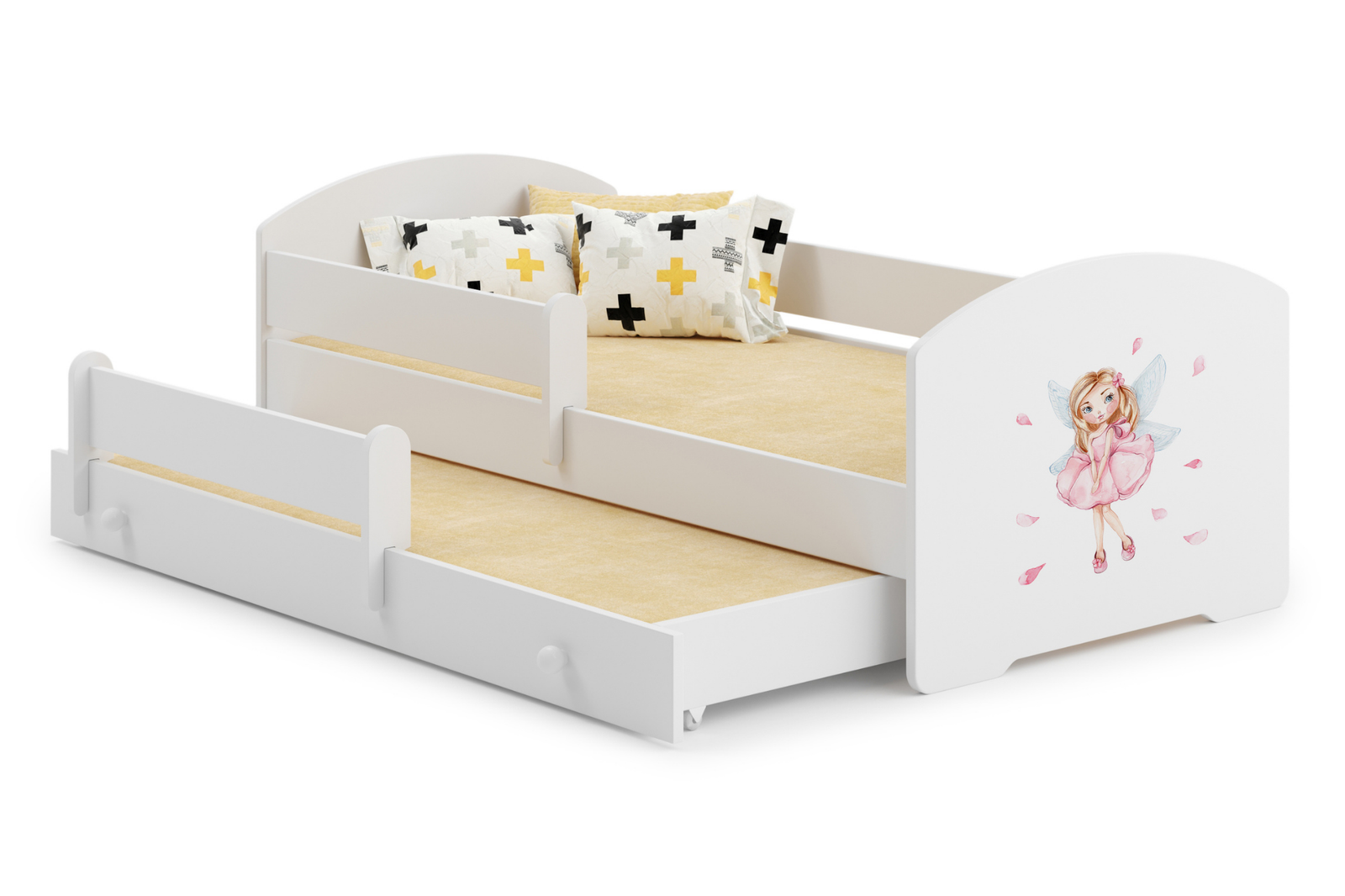 Łóżko dziecięce podwójne wysuwane LUK II 160x80 - Dziewczynka ze skrzydełkami