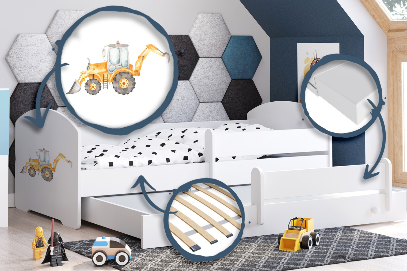 Łóżko dziecięce podwójne wysuwane LUK II 160x80 - Koparka