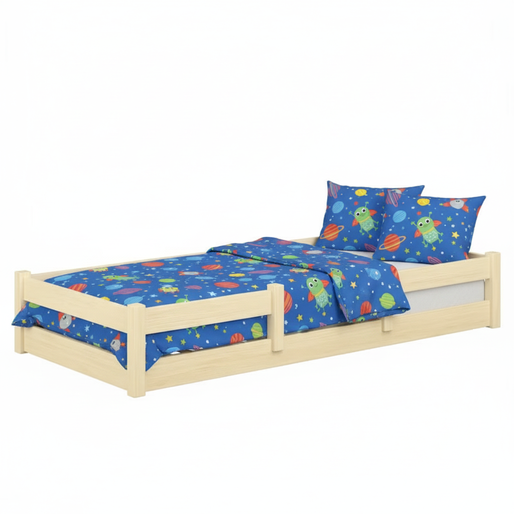 Łóżko LILI zostało zaprojektowane z myślą o najmłodszych, którzy zaczynają spać samodzielnie. Niska konstrukcja ułatwia dziecku wchodzenie i wychodzenie z łóżka, wspierając jego niezależność, a jednocześnie ogranicza ryzyko upadku. Wykonane z naturalnego drewna sosnowego, bez użycia lakierów i szkodliwych substancji, tworzy zdrowe i przyjazne miejsce do snu.