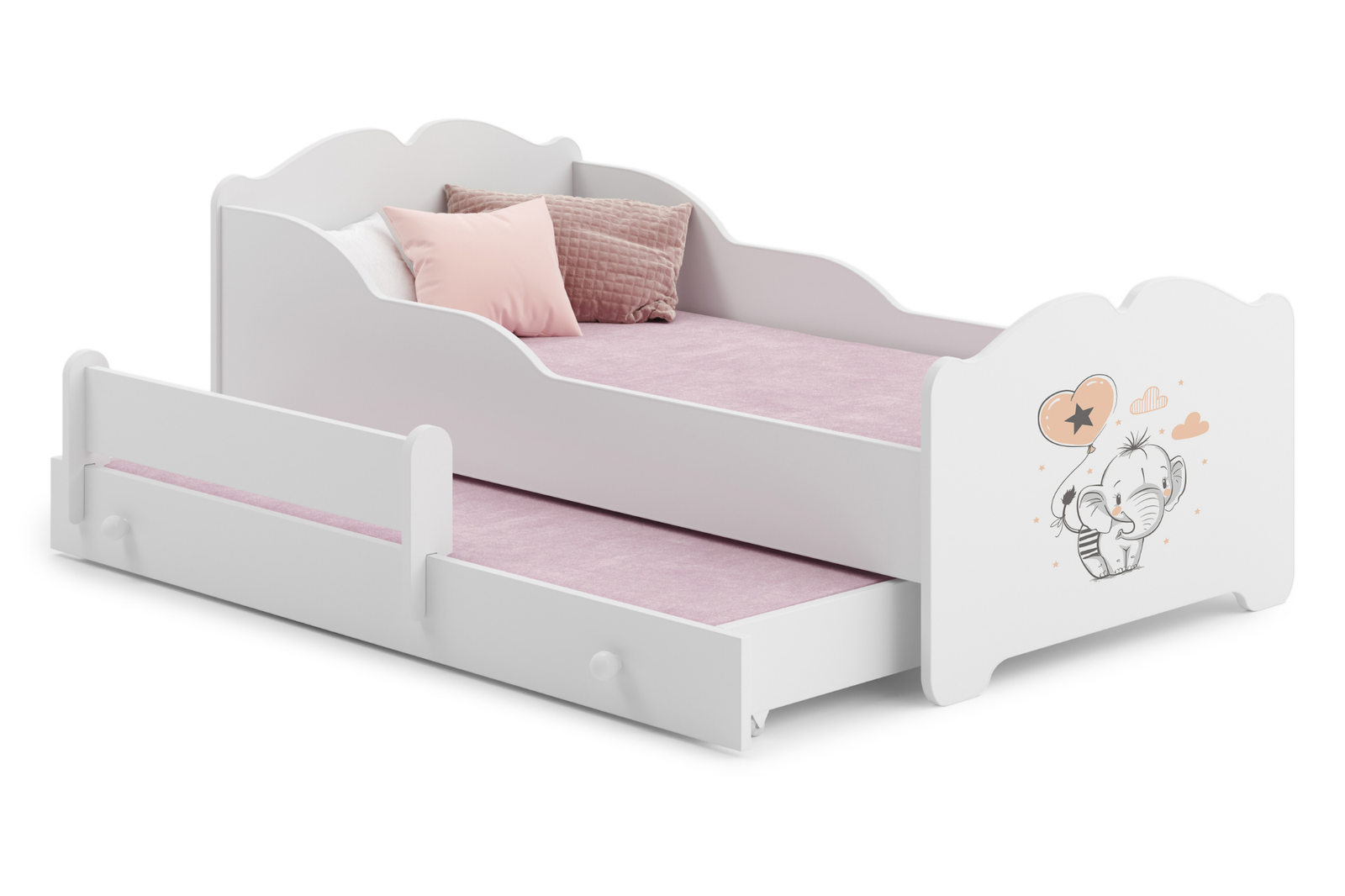 Łóżko ANNA II to funkcjonalne i stylowe rozwiązanie do pokoju dziecięcego, łączące wygodę, bezpieczeństwo i praktyczność. Dzięki wysuwanemu dolnemu poziomowi, pojedyncze łóżko w łatwy sposób zamienia się w podwójne, co pozwala optymalnie wykorzystać przestrzeń – idealne dla rodzeństwa lub gości. Nowoczesny, minimalistyczny design mebla sprawia, że łóżko z łatwością wkomponuje się w różne style aranżacyjne. Łóżko białe z grafiką zapewnia dziecku bezpieczne miejsce do spania i zabawy, szybko stając się ulubionym meblem w pokoju.