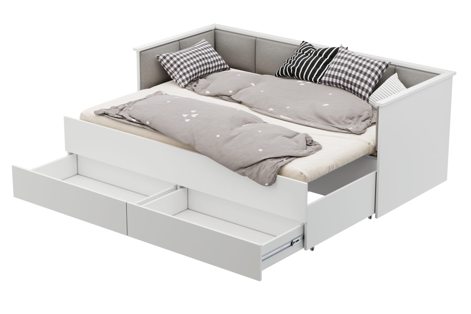 Łóżko Młodzieżowe HELIOS 200x160 – Białe z Szarymi Panelami