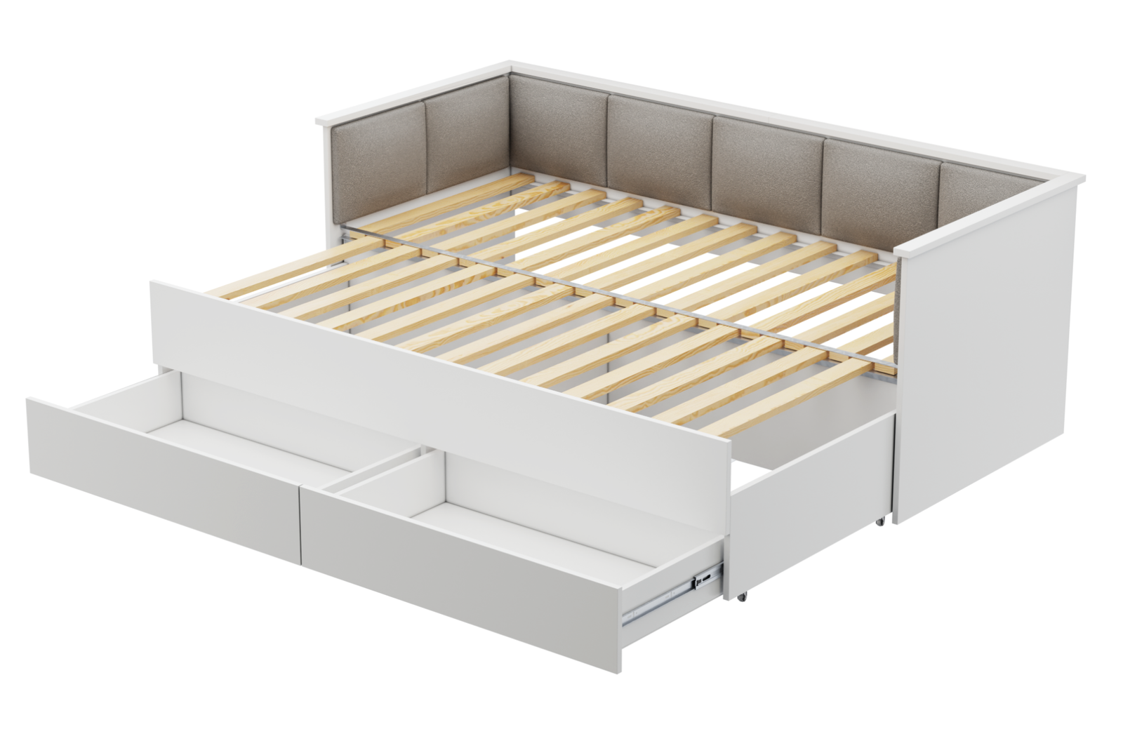 Wystarczy wysunąć dolną część stelaża, aby uzyskać powierzchnię spania 200x160 cm. -