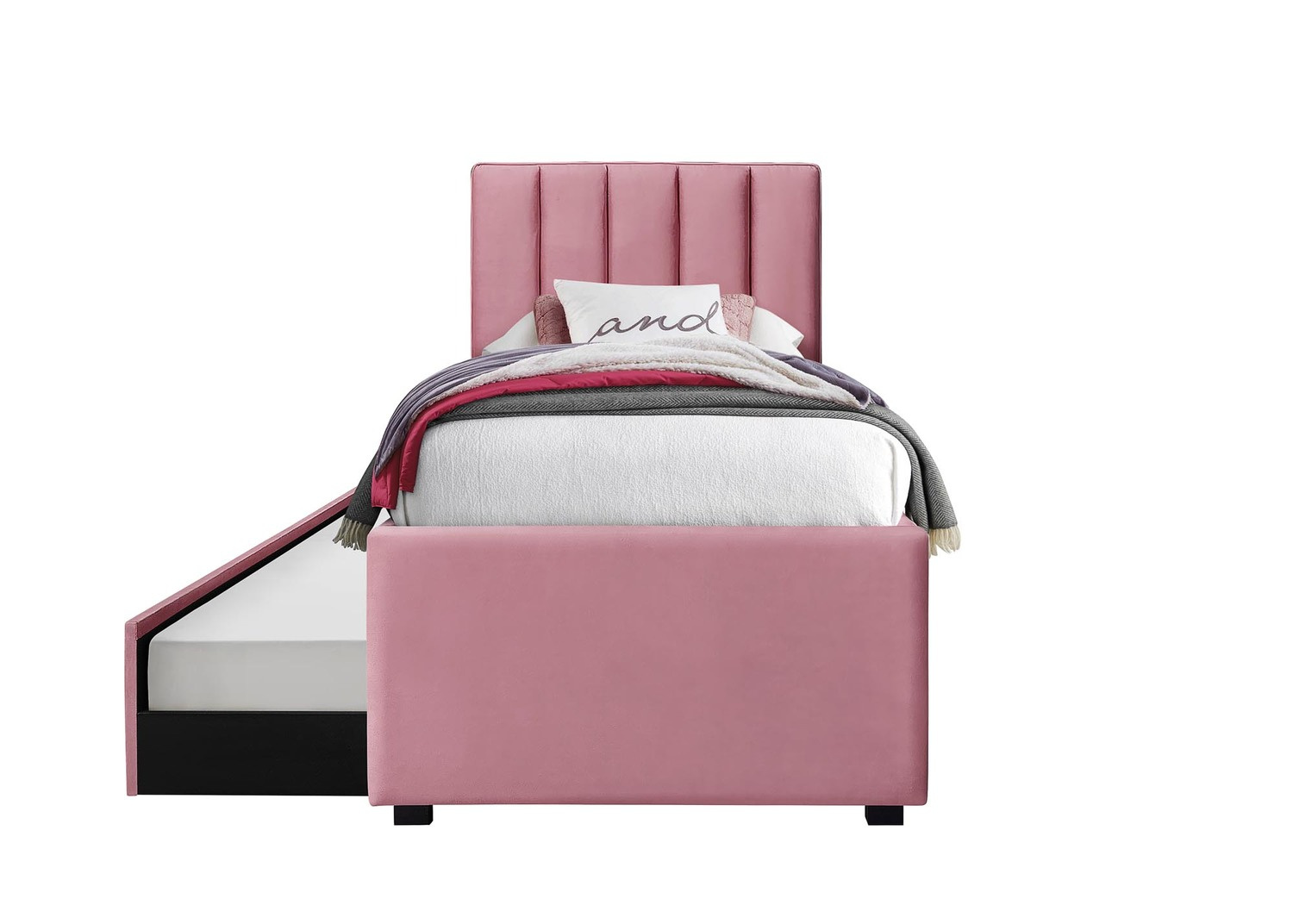 Łóżko ROSA łączy nowoczesne trendy, prostą estetykę, funkcjonalność i solidność mebla. Łóżko dziecięco-młodzieżowe często zajmuje centralny punkt pokoju, dlatego warto wybrać mebel, który połączy wygodę z elegancją. Miękka tapicerka łóżka nadaje mu stylowego wyglądu, idealnie wpasowując się zarówno w klasyczne jak i bardziej nowoczesne aranżacje. Jego dziewczęcy design z tapicerką w różowym kolorze doskonale wpasowuje się w każdą aranżację pokoju małej królewny